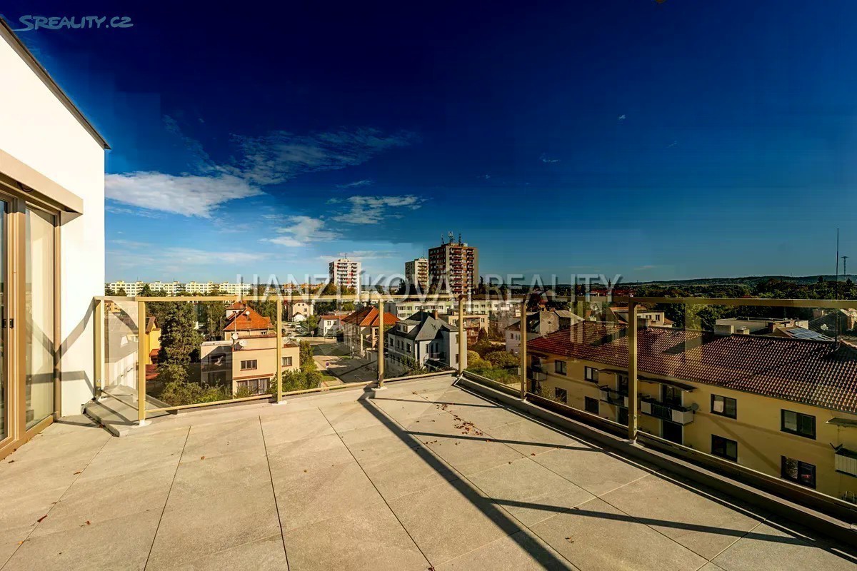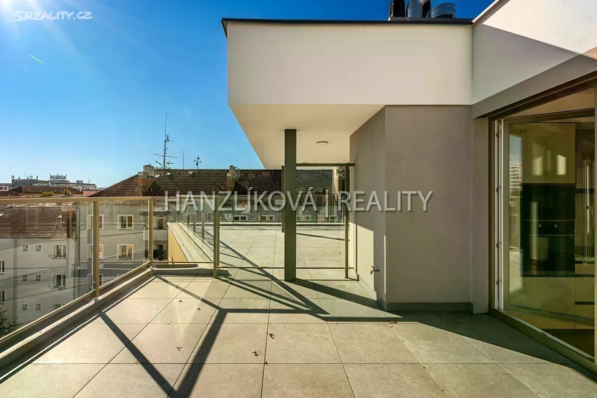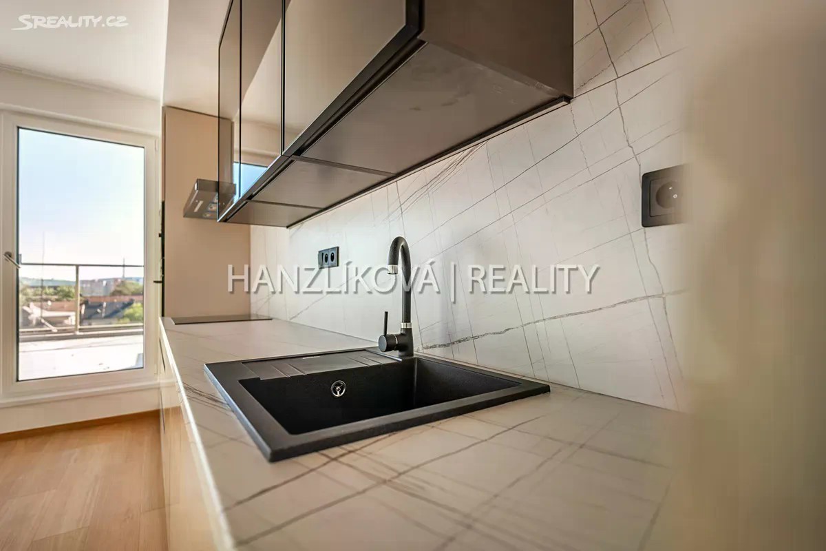 Exkluzivně nabízíme k pronájmu zcela novou bytovou jednotku 3+kk, byt číslo B.31, která se nachází v posledním patře ( 6. NP / 6NP) nově postaveného bytového domu "residence Hálkova". Byt o výměře 65 m2 + terasa 20 m2 je dispozičně řešen jako 3kk, je orientovaný na východ a sever a skládá se z těchto místností : předsíň s vestavnými skříněmi, pokoj, pokoj, koupelna se sprchovým koutem a toaletou, obývací pokoj s kuchyňským koutem a krásná terasa o výměře 20 m2, ze které je výhled téměř na celé město. Byt je částečně vybaven - kuchyňská linka na míru od kuchyňského studia Hanák včetně značkových elektrospotřebičů, osvětlení ve všech místnostech, klimatizační jednotky, předsíňová stěna, předokenní venkovní žaluzie. Dům má 6. NP a 1PP kde se nachází garážová stání a sklepní kóje, je vybaven výtahem, internet je řešen optickými kabely, vytápění je řešeno dálkově přes teplárnu, dům i jednotlivé byty jsou vybaveny vysokým standardem. Vysoký standard residence Hálkova podtrhuje dostatek parkovacích míst, která jsou umístěna na úrovni 1. podzemního podlaží domu. Tam se mimo jiné nacházejí i sklepy. Garážové stání včetně sklepu je možné pronajmout za úplatu - 2.000,- / měs. Pražské předměstí patří dlouhodobě k nejvyhledávanějším městským částem. Prestižní čtvrť tvořená bytovou a vilovou zástavbou, místo s nezaměnitelným geniem loci. Zde si naplno vychutnáte klid této lokality, která je výjimečná také svou dostupností. Za pár minut se můžete procházet u řeky Vltavy nebo nakupovat v IGY.