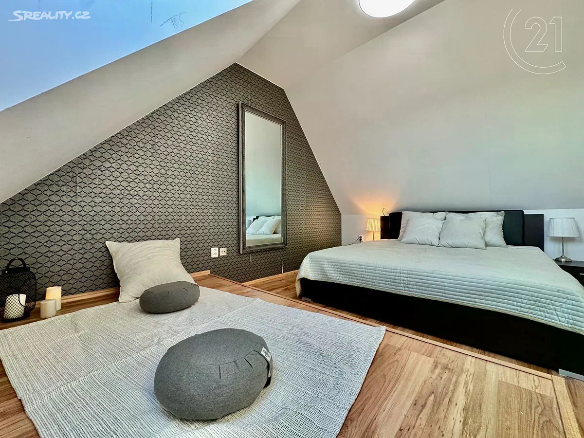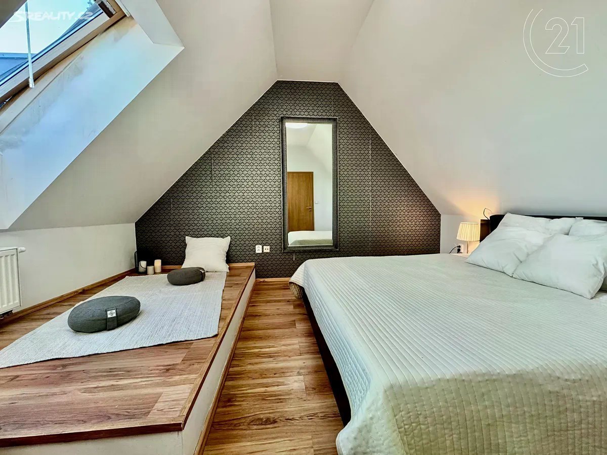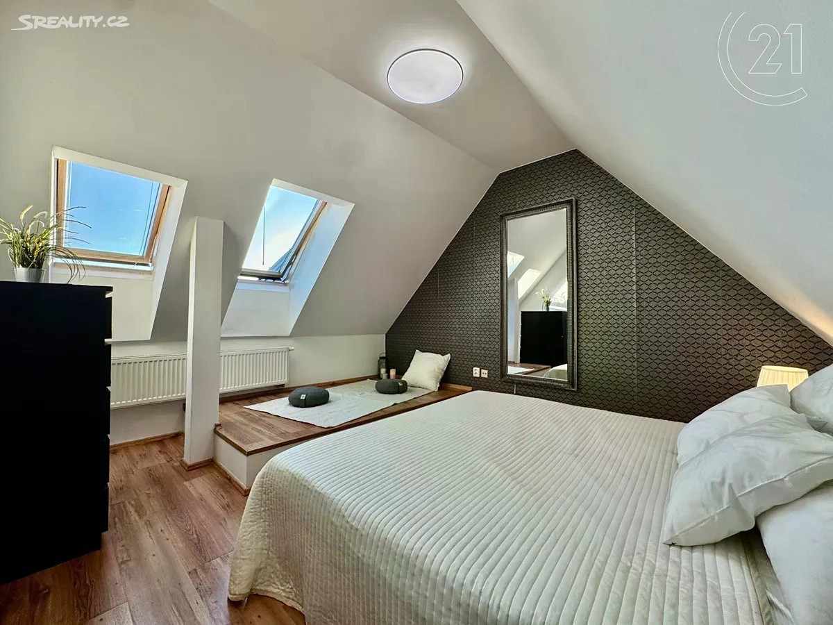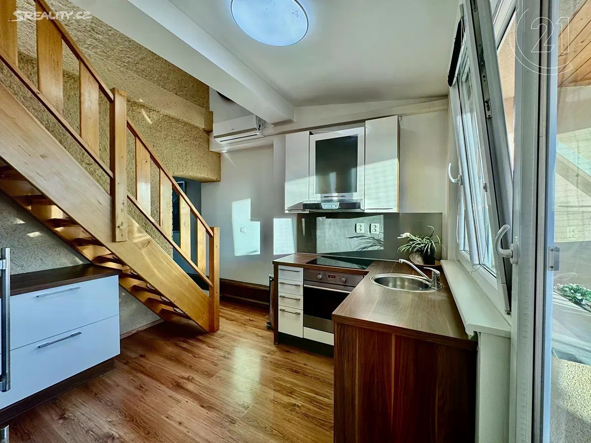 Nabízíme k prodeji moderně zrekonstruovaný byt s klimatizací o dispozici 3+kk na ulici Tržní 6 v Brně Černovicích. Tento byt se nachází v 6. patře cihlového domu bez výtahu původně z roku 1918. Dům prošel kompletní rekonstrukcí v roce 2015. Renovace střechy pak v roce 2023. Dům je zateplený s dřevěnými střešními okny. Svojí neobvyklou dispozicí a rozložením ve dvou patrech nabízí neotřelý prostor v blízkosti řeky Svitavy a dochozího Centra Brna. Interiér bytu má prvky přiznaných krovů a dominuje mu centrální stěna s prostorovou povrchovou úpravou a schodištěm do patra. Byt má přistřešenou terasu s orientací na J. Terasa směřuje do klidného vnitrobloku kam má majitel přístup. Ložnice a obývací pokoj v prvním podlaží bytu jsou orientovány na S s krásným výhledem na Židenice, Vinohrady a Líšeň. Na tomto patře je i kuchyně s terasou a toaleta s umyvadlem. Druhé patro je přístupné po dřevěném otevřeném schodišti z kuchyně. Zde je v zádveří ukrytý plynový kondenzační kotel s úložným prostorem na chodbě. Z chodby je vstup do ložnice a koupelny se sprchovým koutem, pračkou a dostatkem prostoru. Náklady měsíčně za rok 2O24 celkem 5.012 Kč: SVJ 802 Kč Elektřina 1.820 Kč Plyn 2.390 Kč Parkování je možné v modré zóně C na ul. Klíčové nebo Zvěřinové. Přímo před domem se dá bezpečně zastavit a vyložit nákup. Pro více informací a prohlídku kontaktujte makléře Petra Vyskočila.