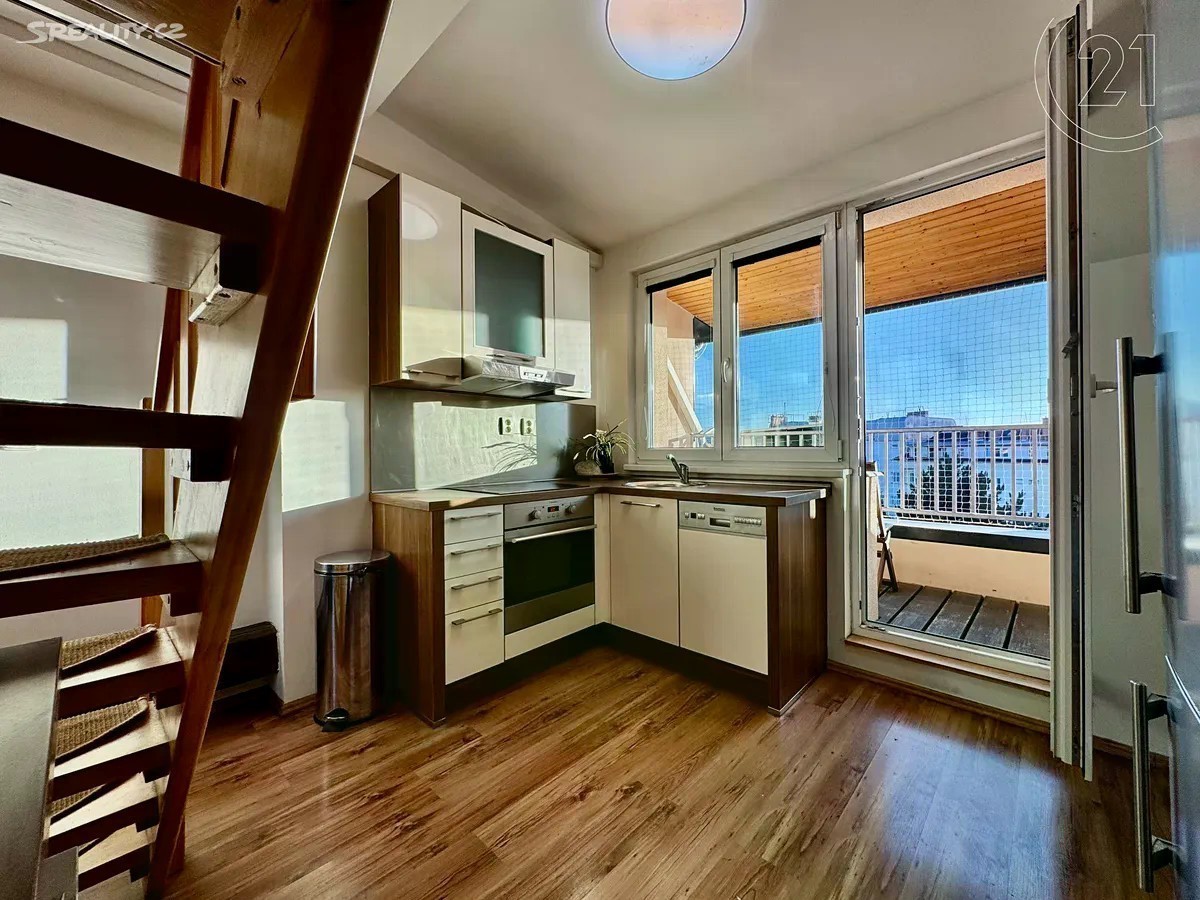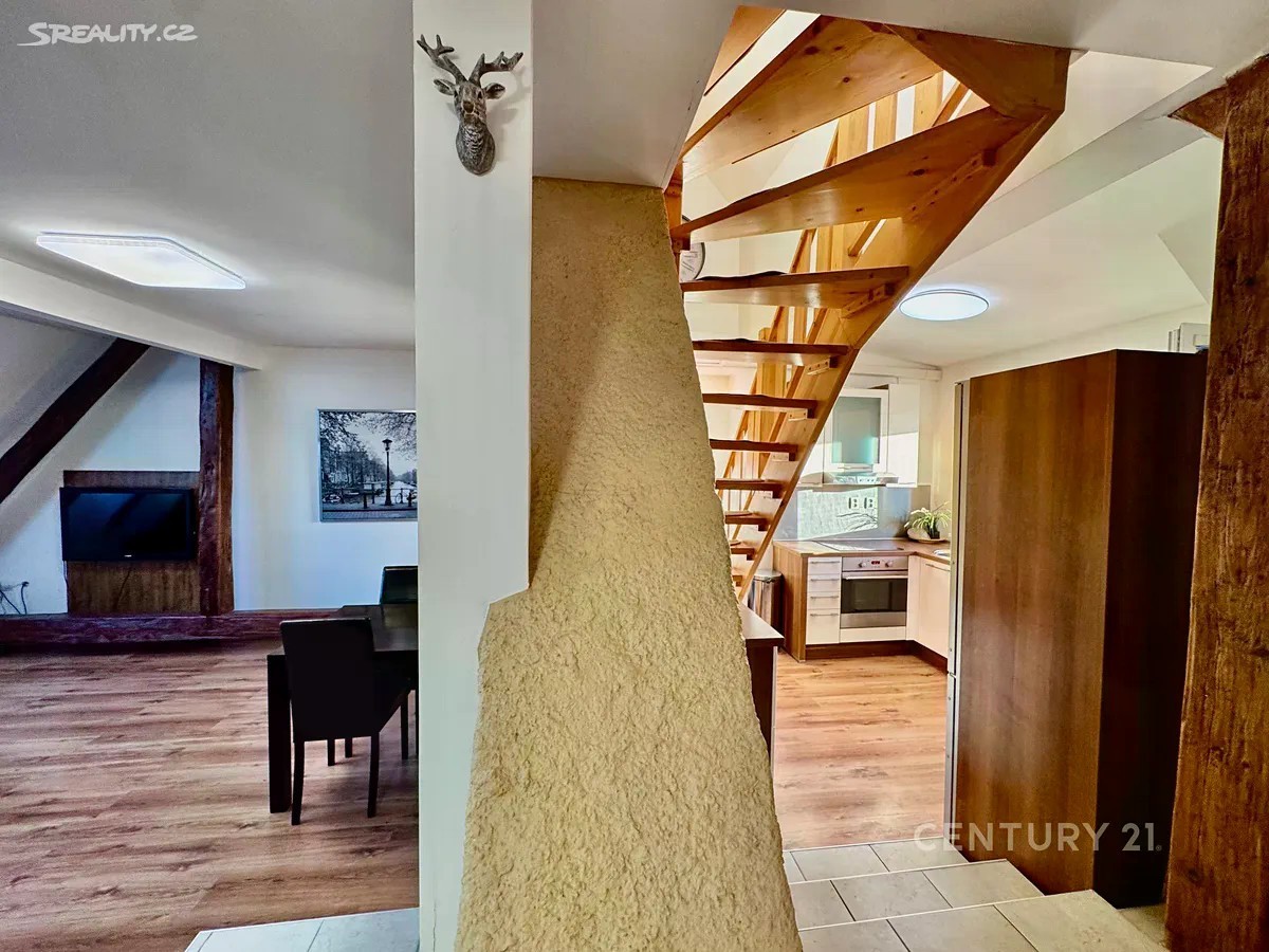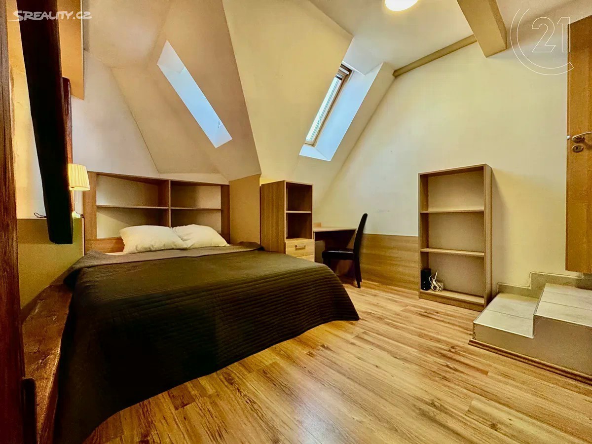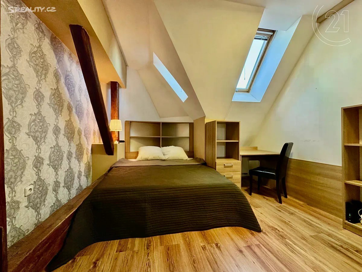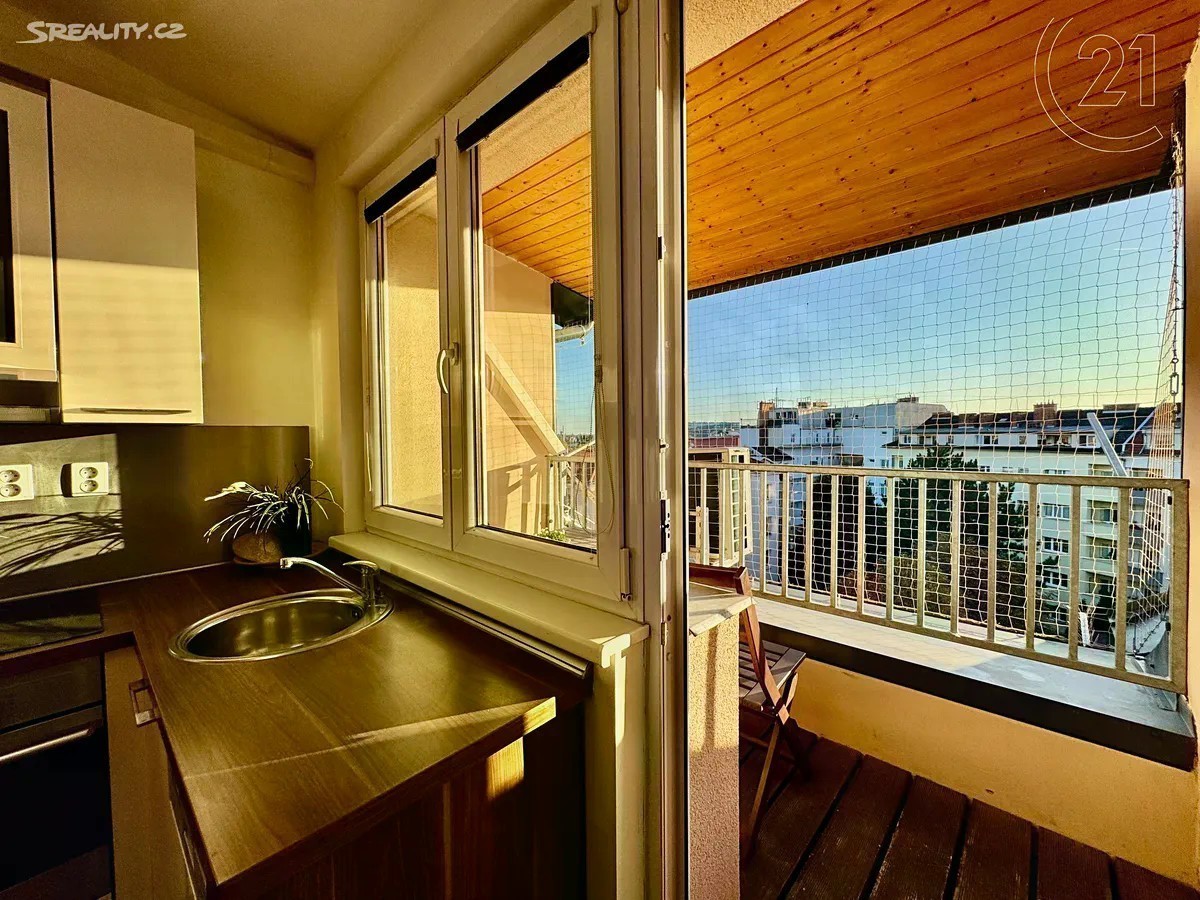 Nabízíme k prodeji moderně zrekonstruovaný byt s klimatizací o dispozici 3+kk na ulici Tržní 6 v Brně Černovicích. Tento byt se nachází v 6. patře cihlového domu bez výtahu původně z roku 1918. Dům prošel kompletní rekonstrukcí v roce 2015. Renovace střechy pak v roce 2023. Dům je zateplený s dřevěnými střešními okny. Svojí neobvyklou dispozicí a rozložením ve dvou patrech nabízí neotřelý prostor v blízkosti řeky Svitavy a dochozího Centra Brna. Interiér bytu má prvky přiznaných krovů a dominuje mu centrální stěna s prostorovou povrchovou úpravou a schodištěm do patra. Byt má přistřešenou terasu s orientací na J. Terasa směřuje do klidného vnitrobloku kam má majitel přístup. Ložnice a obývací pokoj v prvním podlaží bytu jsou orientovány na S s krásným výhledem na Židenice, Vinohrady a Líšeň. Na tomto patře je i kuchyně s terasou a toaleta s umyvadlem. Druhé patro je přístupné po dřevěném otevřeném schodišti z kuchyně. Zde je v zádveří ukrytý plynový kondenzační kotel s úložným prostorem na chodbě. Z chodby je vstup do ložnice a koupelny se sprchovým koutem, pračkou a dostatkem prostoru. Náklady měsíčně za rok 2O24 celkem 5.012 Kč: SVJ 802 Kč Elektřina 1.820 Kč Plyn 2.390 Kč Parkování je možné v modré zóně C na ul. Klíčové nebo Zvěřinové. Přímo před domem se dá bezpečně zastavit a vyložit nákup. Pro více informací a prohlídku kontaktujte makléře Petra Vyskočila.