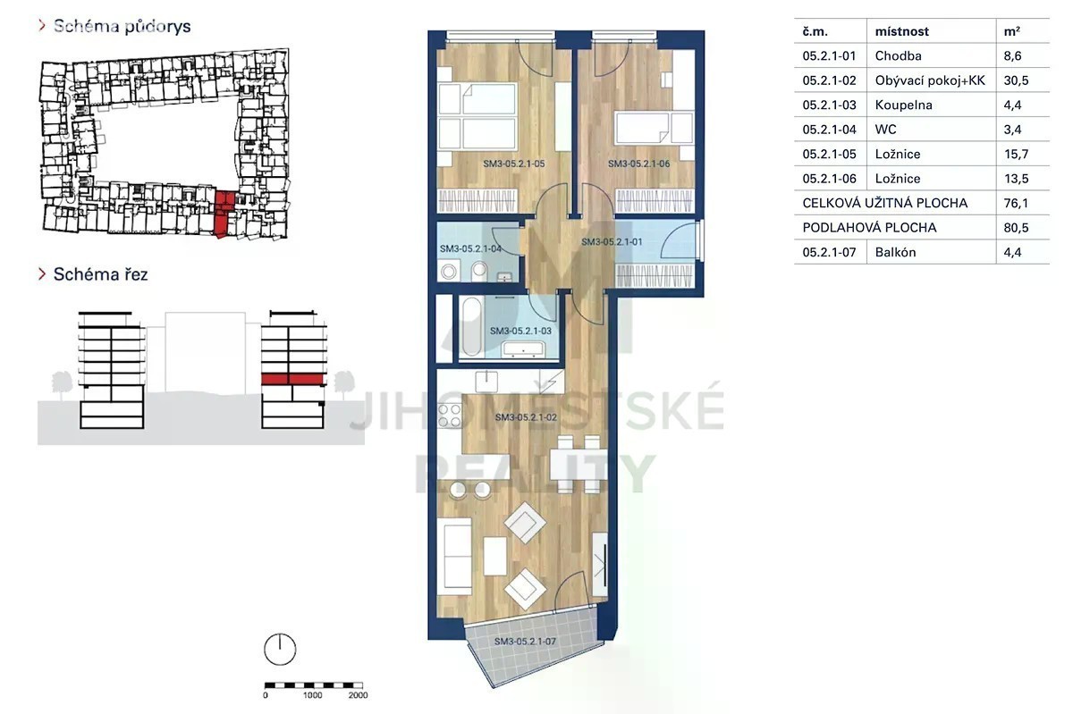 Prodej nového, nadstandardně vybaveného bytu 3+kk o výměře 81 m2 s balkonem o výměře 4 m2, parkovacím stáním a sklepem. Byt se nachází v 2. nadzemním podlaží novostavby v projektu Smíchov City. V bytě jsou okna s izolačními trojskly a již nainstalovanými dálkově ovladatelnými předokenními žaluziemi. O minimální tepelné ztráty a stálý přísun čerstvého vzduchu se stará systém řízeného větrání s centrální rekuperací. Byt je vybaven koupelnou s vanou a samostatným WC. Použity jsou kvalitní vodovodní baterie značky Hansgrohe. Podlahy jsou dřevěné, v koupelně a na toaletě je položena dlažba. Vstupní dveře jsou bezpečnostní a protipožární s ocelovou zárubní, vnitřní obložkové dveře jsou dřevěné, bezfalcové s magnetickou střelkou. K bytu přísluší velké parkovací stání a sklep. Novostavba bytového domu je součástí rezidenčního bloku a zahrnuje celkem 12 bytových domů. Je součástí projektu Smíchov City, jehož záměrem je nabídnout obyvatelům moderní bydlení s vysokým standardem provedení, vybavené špičkovými technologiemi. Nespornou výhodou je navíc umístění v centru města. Exkluzivní byty doplní v přízemí objektů funkční městský parter s obchody a službami. V ulicích budou vysázeny stromy, které zpříjemní klima a v horkých dnech poskytnou chladivý stín. Blok sousedí s třídou Madeleine Albrightové pojatou jako pěší podélný park a budoucím parkem Alice a Anny Masarykových. Lokalita Smíchov nabízí veškeré pohodlí městského života - v docházkové vzdálenosti naleznete kavárny, obchody, lékárny i obchodní centrum. Výborná dopravní dostupnost: pár kroků od metra B (Smíchovské nádraží), tramvajových i autobusových zastávek, s přímým napojením i na vlakové spoje. Pro volnočasové aktivity je k dispozici oblíbená náplavka či nedaleké Prokopské údolí. Klasifikační třída energetické náročnosti je B.