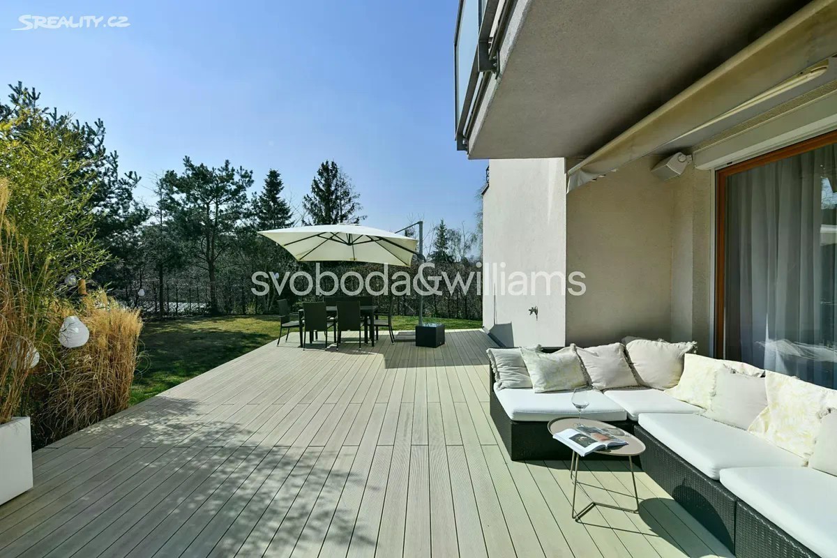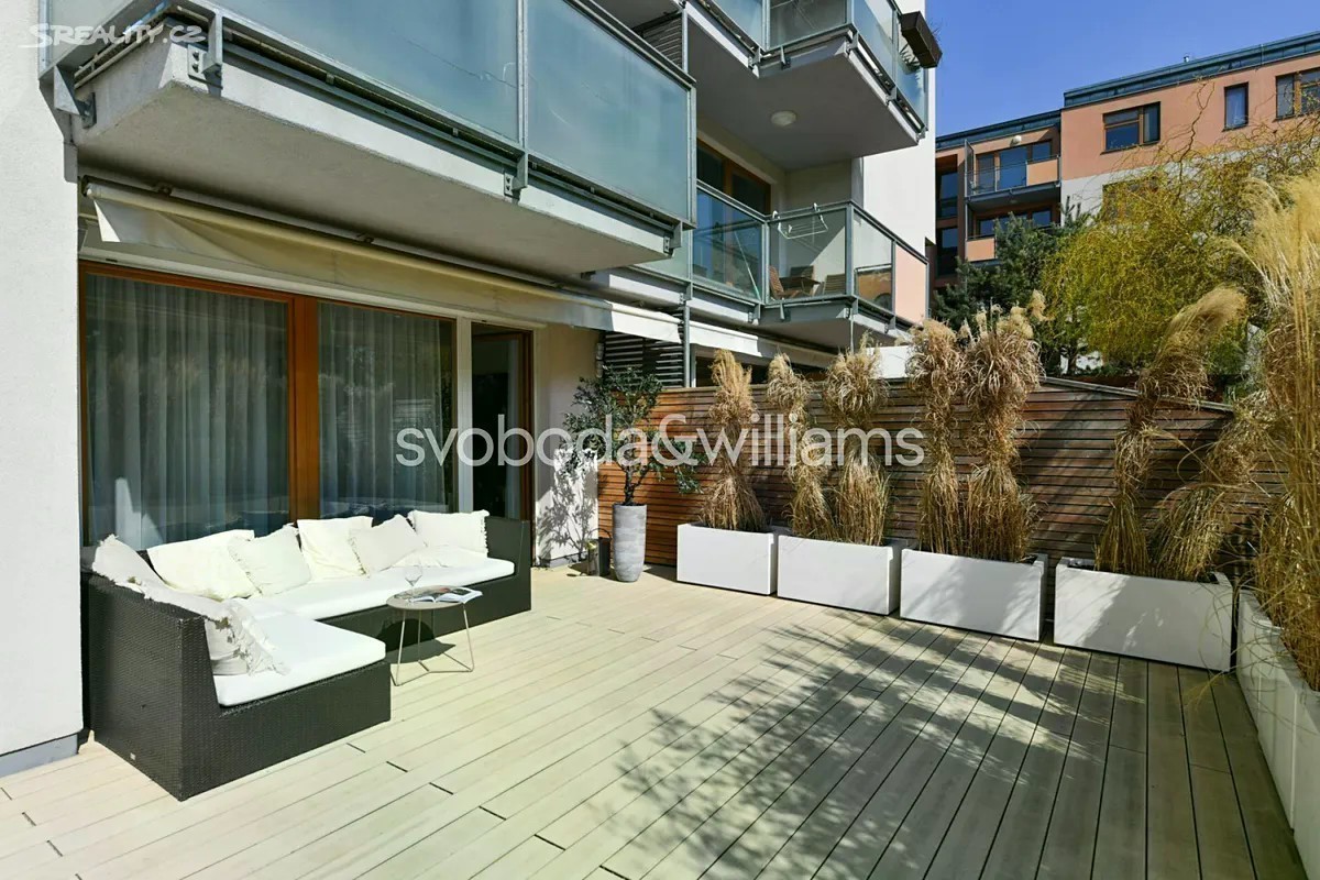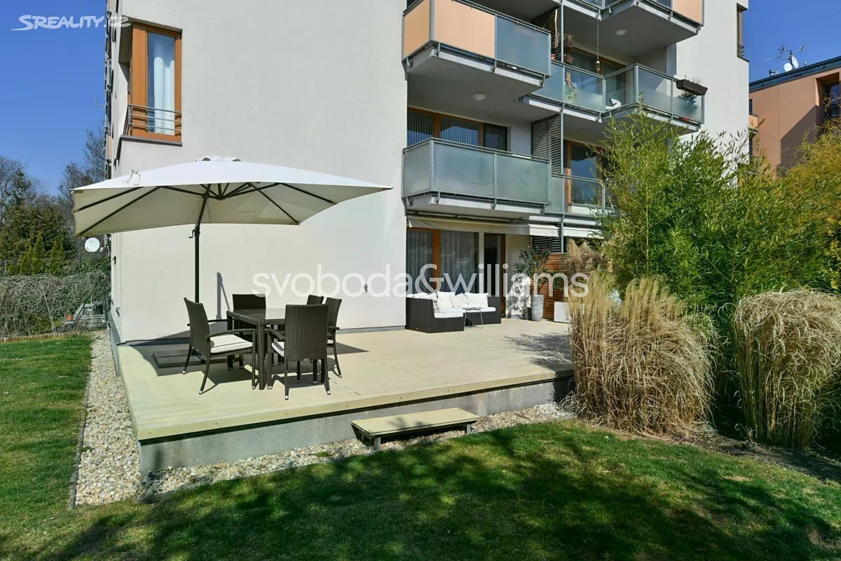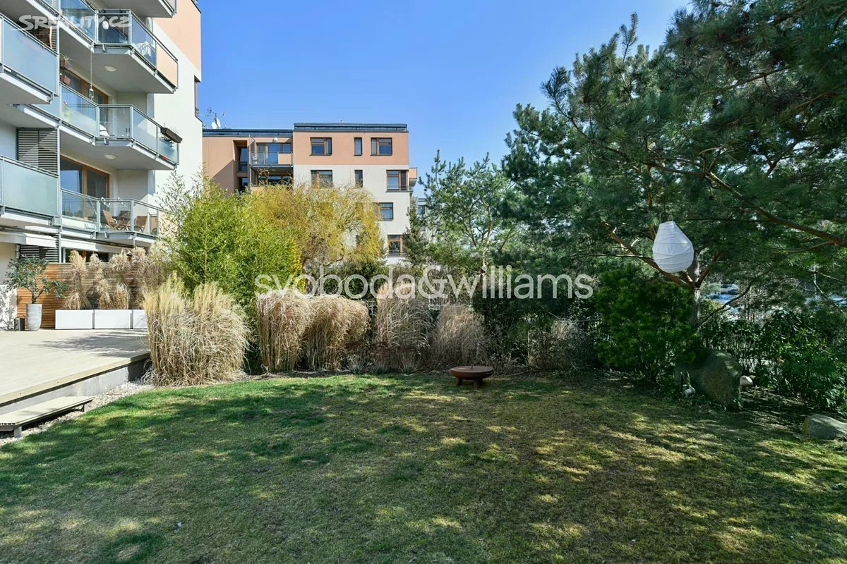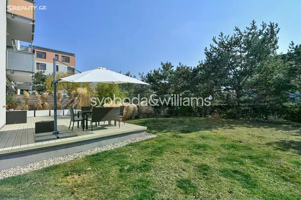 Nabízíme k pronájmu kompletně zařízený byt se 450 m2 privátní zahradou a 50 m2 terasou, situovaný v přízemí moderního rezidenčního komplexu s podzemním parkováním. Budova stojí v klidné lokalitě na okraji parku Zahrádky, nedaleko říčky Rokytka s fitness stezkou, poblíž cyklostezky a dětských hřišť. V blízkém dosahu se nachází výborná občanská vybavenost, nová základní škola a několik školek, zastávka tramvají, obchodní centrum Galerie Harfa a Sazka Aréna. Parkem lze dojít ke stanici metra Kolbenova, nedaleko je i stanice metra Hloubětín, trasa B. Lokalita také nabízí výborné spojení na Mladou Boleslav. Byt tvoří obývací pokoj s plně vybavenou kuchyní a velkoplošnými okny s přístupem na terasu a zahradu, 2 samostatné ložnice, koupelnu s vanou a toaletou, samostatnou toaletu s bidetovou sprškou a vstupní chodbu. Kvalitní vybavení, laminátové podlahy, dlažba, bezpečnostní dveře, vestavěné skříně v jedné ložnici a předsíni, předokenní rolety, centrální vytápění, pračka se sušičkou, myčka, indukční varná deska, mikrovlnná trouba, TV, audio systém, alarm s možností napojení na PCO, sklep. Vzrostlá zahrada s automatickou závlahou, zahradní nábytek, velký slunečník a markýza na terase. V ceně je zahrnuto 1 garážové stání a 1 venkovní parkovací stání.