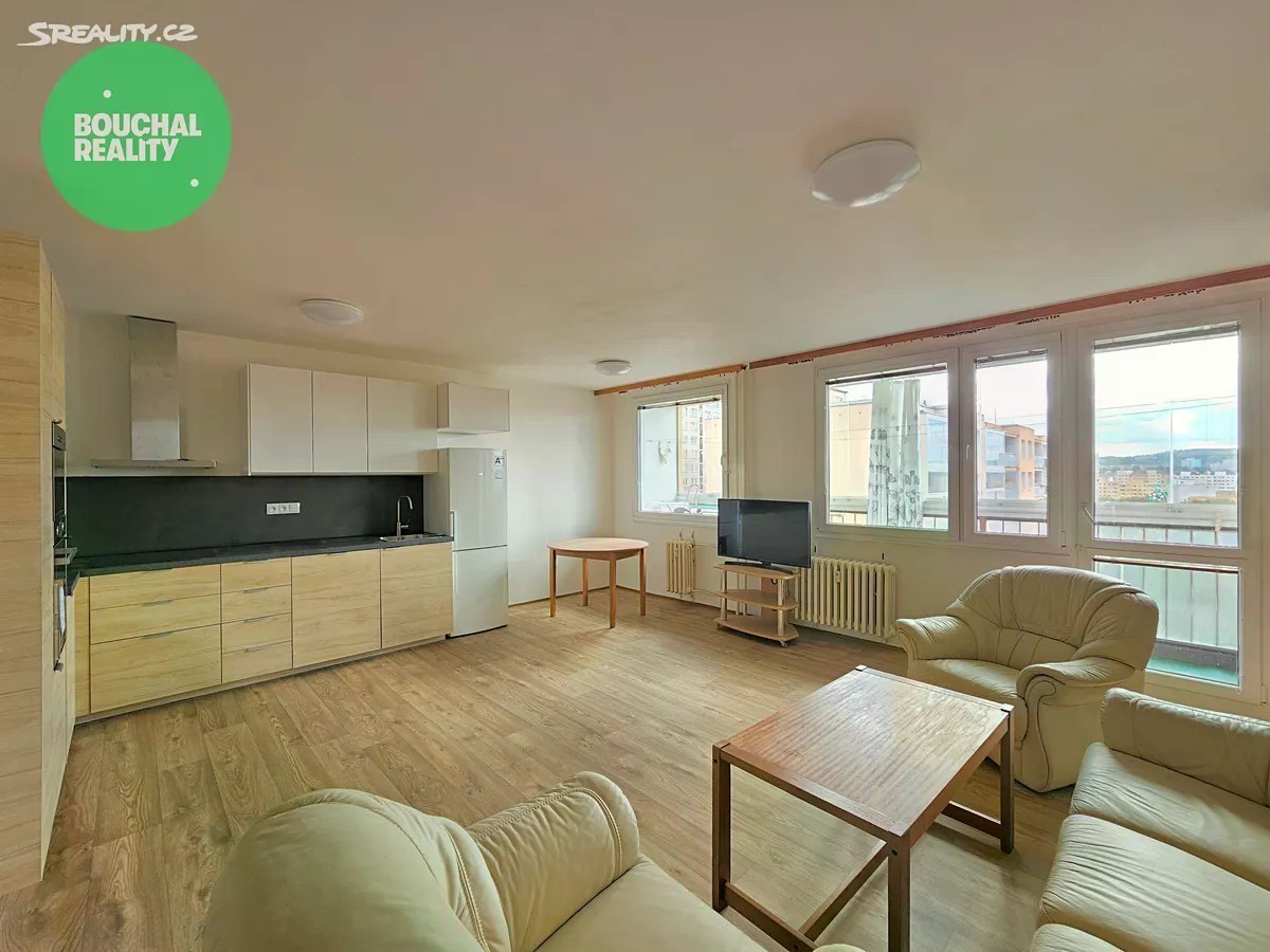 Rádi bychom Vám nabídli k pronájmu krásný světlý byt o dispozici 3+kk se zasklenou lodžií, sklepem a možností garážového parkovacího stání, který se nachází v žádané lokalitě v Praze-Modřanech, v ul. Krouzova. Byt právě prošel vkusnou rekonstrukcí a kromě nových podlahových krytin je zde nová kuchyňská linka s vestavěnými spotřebiči (lednice, mrazák, trouba, myčka,. ). Ostatní vybavení není podmínkou pronájmu bytu. Dispozičně je byt řešen jako chodba, předsíň, dva neprůchozí pokoje, koupelna s vanou a umyvadlem, samostatné WC a nově vytvořený prostorný obývací pokoj s kuchyňským koutem, odkud je vstup na zasklenou lodžii. Propojením obývacího pokoje s kuchyní vznikl krásný prosluněný prostor. K bytu náleží sklep, který je jako jediný zděný, přímo u schodiště/výtahu a nabízí tak možnosti uskladnění i hodnotnějších věcí. Dále je zde možnost pronajmout si garážové parkovací stání za 1.800,- Kč za měsíc. Jedná se o klidné a bezpečné bydlení v oblíbené pražské čtvrti Modřany s kompletní občanskou vybaveností a skvělým dopravním spojením (MHD v docházkové vzdálenosti). Majitel preferuje slušné nájemce bez domácích zvířat. Byt je volný ihned.