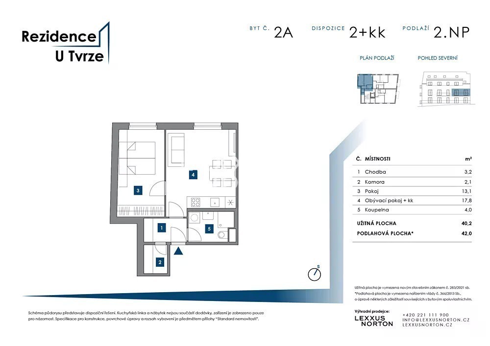Byt 2+kk o ploše 42 m² se sklepem se nachází ve 2. podlaží Rezidence U Tvrze v Malešicích. Komorní projekt nabízí moderní technologie, kvalitní materiály a bydlení v klidném prostředí s perfektní dostupností do centra. Obývací pokoj s kuchyňským koutem působí vzdušně a poskytuje příjemné místo pro relaxaci. Hlavní ložnice má dostatek prostoru pro šatní skříň a další úložné prvky. Koupelna se sprchovým koutem a WC je zpracována v nadčasovém stylu - stěrka v imitaci kamene a černé baterie Mexen Cube. Součástí standardu jsou vysoce kvalitní materiály a moderní technologie: energeticky úsporný systém SMARTPANEL zajišťuje optimální mikroklima, podlahové vytápění ve všech obytných místnostech garantuje maximální pohodlí. Hliníková okna s trojskly poskytují vynikající tepelně-izolační i akustické vlastnosti. Vzduchotechnika s centrální rekuperací a regulací CO₂ přináší stálý přísun čerstvého vzduchu. Chytrá domácnost TapHome umožňuje ovládání topení, osvětlení i zabezpečení bytu na dálku. Lokalita Malešic nabízí ideální kombinaci klidného prostředí plného zeleně a veškeré občanské vybavenosti. V těsné blízkosti najdete Malešický park, botanickou zahradu i přírodní park Smetanka. Na dosah jsou restaurace, kavárny, obchodní centrum Oáza Malešice, mateřské i základní školy. Do centra Prahy se dostanete pohodlně a rychle - autobusová zastávka Malešické náměstí je vzdálená jen 500 metrů a přímým spojem jste na metru Skalka za pouhých sedm minut, do centra Prahy dojedete celkově do 30 minut. Do budoucna se v lokalitě plánuje další rozvoj veřejných prostranství a dopravní infrastruktury, včetně nové cyklostezky na místě původního viaduktu, která propojí Malešice se širší sítí pražských cyklotras.