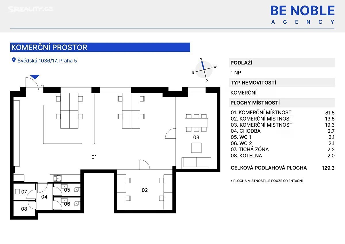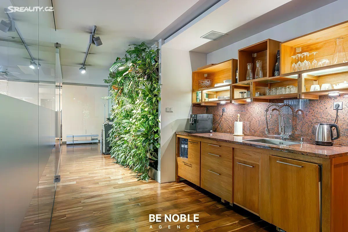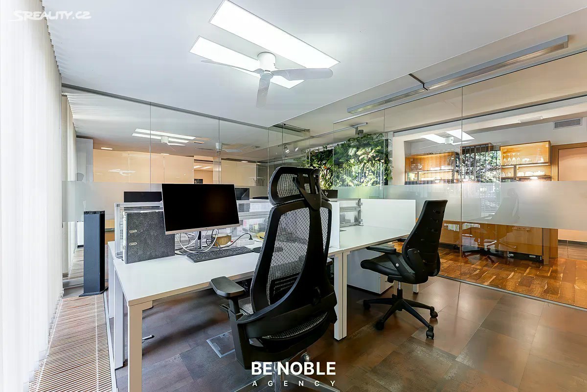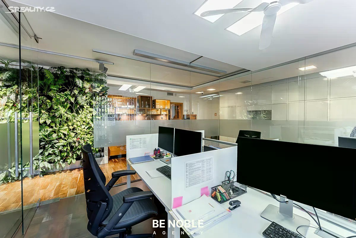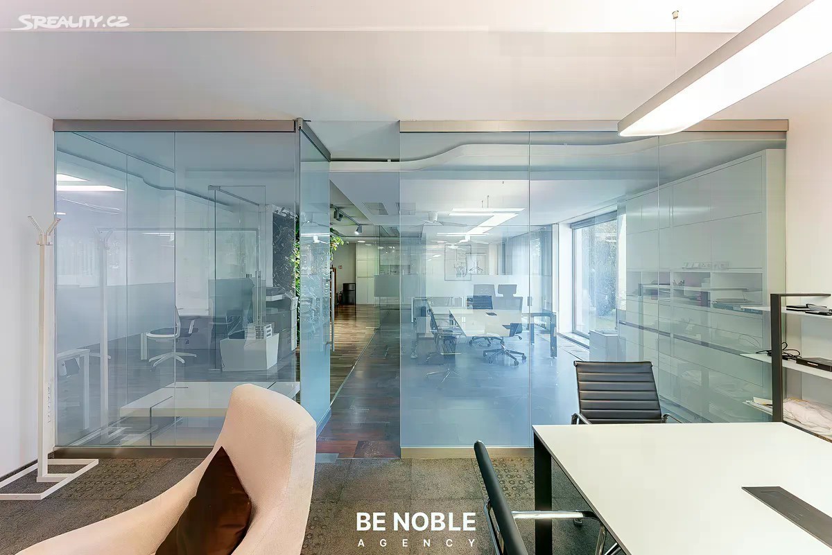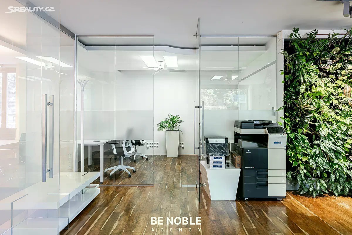 Prodej reprezentativních kanceláří se třemi podzemními parkovacími stáními, ulice Švédská - Praha 5, Smíchov - Sacré Coeur. Nabízíme k prodeji moderní, hezky prosvětlený a plně vybavený kancelářský prostor o užitné ploše 123 m², který se nachází v prestižní a velmi žádané lokalitě Prahy 5 - Smíchov, jen pár kroků od Anděla. Jedná se o prostor, který spojuje atraktivní adresu, promyšlenou dispozici a nadstandardní provedení, a je vhodný pro cca 15 osob. Dominantou je velkorysý open space o rozloze 82 m², který je rozdělen do 4 samostatných zón oddělených prosklenými příčkami: • Předsíň s úložnými prostory • Plně vybavená kuchyň a vertikální zahrada • Zóna pro 4 pracovní místa • Největší zóna pro dalších 4 až 8 pracovních míst i s knihovnou a místem pro tiskárnu Součástí je dále zasedací místnost se stolem pro osm osob, větším gaučem a dvěma křesly (19 m²), která je navíc oddělena od open spacu speciální prosklenou příčkou s možností elektronického ovládání průhlednosti. Jen toto byla investice za 300 tisíc korun. A dále místnost se čtyřmi pracovními místy, ze které však může být další zasedací místnost. Celá tato část je velice prosvětlena díky panoramatickým oknům podél celé jedné dlouhé stěny, ze kterých je výhled do velké zelené předzahrady s hezkými terénními úpravami, o kterou se navíc stará SVJ. Dispozici doplňují samostatná odhlučněná telefonní budka, která je ideální pro soukromé hovory či online meetingy, dvě oddělené toalety a technická místnost. Prostor je kompletně vybavený kvalitním kancelářským nábytkem a připravený k okamžitému užívání bez nutnosti dalších investic. Je zde dobře řešené osvětlení, vestavěné úložné prvky, kazetové podlahy, kamerový systém, alarm a mnoho dalšího. Za zmínku stojí výborně fungující SVJ a nízké provozní náklady - se vším všudy a i údržbou zeleně se vejdete do cca 8 000 Kč měsíčně. Velkým benefitem je trojice parkovacích stání v podzemní garáži přímo v objektu. V této části Prahy jde o významnou přidanou hodnotu, která usnadňuje každodenní provoz a zvyšuje atraktivitu prostoru jak pro zaměstnance, tak pro klienty. Však je možnost parkování jak na bílé, tak i modré zóně přímo ve Švédské a dalších přilehlých ulicích. Budova, ve které se kancelář nachází, je z roku 2005, však už tehdy se jednalo o luxusní novostavbu, která je výborně udržovaná a dodnes působí reprezentativním dojmem. Společné prostory jsou udržované, k parkovacím stáním se jezdí výtahem a budova i kancelář má bezbariérový přístup. Přičemž kancelář má vlastní přístup jak ze společné zahrady, tak z ulice, a je zde i možnost umístění svítící cedule s názvem firmy. Navíc ve vnitrobloku domu je další zelená zahrada s posezením pro společné užívání. Lokalita Švédská na Smíchově je jednou z nejžádanějších pražských adres. Jen pár minut chůze se nachází areál Sacré Coeur, kde najdete kavárny a restaurace a další občanskou vybavenost. O něco dál přes park se nachází obchodní a administrativní centrum Anděl s nákupním centrem Nový Smíchov, širokou nabídkou restaurací, kaváren, fitness center a kompletní občanskou vybaveností. V blízkosti najdete i banky, poštu, zdravotnická zařízení a množství služeb, které zajišťují vysoký komfort pracovního prostředí. Smíchov navíc patří k nejdynamičtěji se rozvíjejícím částem Prahy - v okolí probíhá a připravuje se řada developerských projektů, což zvyšuje investiční atraktivitu celé oblasti. Však tato konkrétní část leží přímo u vstupu do Petřínských sadů, jedná se o opravdu nevšední, čistou a zelenou lokalitu. Tato nabídka je zajímavá i z investičního pohledu. Současný vlastník je připraven zůstat v nájmu, což novému majiteli přináší stabilní a předvídatelný výnos - odhadovaně kolem 5 % ročně. Kancelářský prostor na Švédské je tak vhodný nejen pro vlastní využití jako sídlo společnosti, ale také jako bezpečná a výnosná investice. Pokud hledáte reprezentativní, komorní kanceláře v prestižní lokalitě s kompletním zázemím a vynikající dostupností, tato nabídka je přesně pro vás. Rádi vám poskytneme více informací a domluvíme osobní prohlídku. Be Noble agency