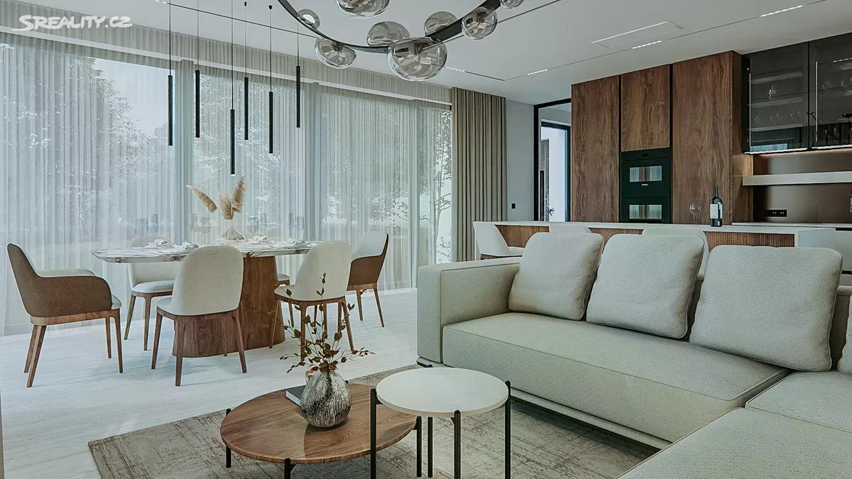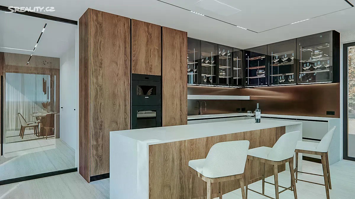 Nabízíme k prodeji exkluzivní vilu připravenou k okamžitému nastěhování. Nachází se v klidné části Praha - Újezd u Průhonic, která se vyznačuje vynikající dostupností do centra města a zároveň intimním prostředím pro bydlení. Tato novostavba, zajišťuje vysoký nadstandard s užitnou plochou 205 m2 a podlahovou plochou 218 m2. Velikostí pozemku 542 m2 nabízí dostatečný prostor i pro větší rodinu. Vila je plně luxusně vybavena od studia Tempus Design. Najdete zde travertinové podlahy, dřevěné podlahy ve stylu Chevron, obklady od světové značky Porcelanosa, koupelnové produkty Gessi, dveře Jap v nadstandartním provedení a mnoho dalšího. Interiér doplněn dýhovým kusovým nábytkem dovezeným z Itálie, travertinovými obklady, osvětlením Bomma skrytými klimatizacemi, chytrou domácností Loxone, tepelným čerpadlem, bazénem, terasou a kompletní zahradu se závlahou. Prohlídky jsou možné po předchozí domluvě. Pro více informací o této nemovitosti nebo sjednáním schůzky nás prosím kontaktujte nebo vyplňte níže uvedený formulář, rádi Vás provedeme.