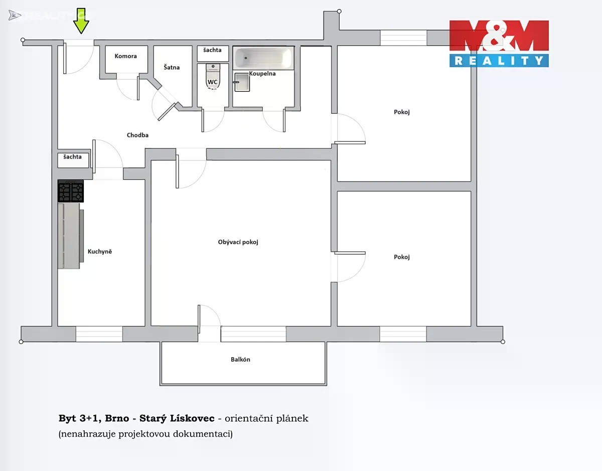 K pronájmu nabízíme částečně zařízený byt 3+1 s užitnou plochou 70 m², umístěný ve 3. patře panelového domu s výtahem. K bytu náleží balkon o velikosti 5 m². Byt prošel částečnou rekonstrukcí - v roce 2025 byla položena nová podlaha a instalována nová kuchyňská linka. Dispozici tvoří tři obytné pokoje, přičemž obývací pokoj je jediný průchozí a má přímý vstup na balkon. Dále zde najdete kuchyň, koupelnu, samostatné WC, šatnu a komoru. V bezprostředním okolí domu je k dispozici kompletní občanská vybavenost, což z lokality činí ideální místo pro rodiny s dětmi. Dobré dopravní spojení MHD a rychlý nájezd na dálnici (do 10 minut) zajišťují pohodlnou dostupnost. Pro více informací nebo sjednání prohlídky nás neváhejte kontaktovat.