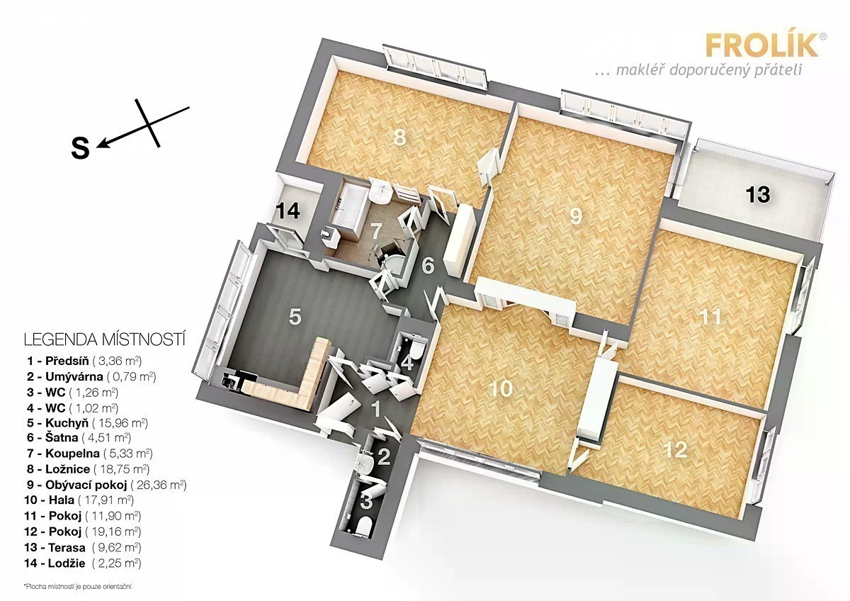 Do tohoto parádního bytu hledáme fajnovou rodinu nebo i jen pár, který má rád prostor a ocení styl, v jakém je byt provedený. Nabízíme útulné kvalitní bydlení s výhledem dlouhodobého pronájmu. Byt je to opravdu velkorysý! Má dostatečně veliké místnosti, poctivé dřevěné parkety, velká Euro okna s dvojskly a předokenními elektrickými roletami, pěkné výhledy a orientaci na všechny světové strany. Kromě toho spoustu různých úložných vestavěných skříní a zrekonstruované původní prvky. V srdci bytu Vás jistě okouzlí nádherný prostor, který může vzniknout propojením haly (s otevírací prosklenou stěnou) a obývacího pokoje. Najdete ho v 1. patře výborně udržované vilky, v ulici Kladenská, jen pár kroků od stanice metra Bořislavka. Ve své celkové ploše cca 125 m2 (+ terasa cca 9 m2) Vám nabídne: vstupní chodbu, halu, obývací pokoj, 3 samostatné ložnice, kuchyni s malou lodžií, koupelnu a dvě WC. Do bytu se vstupuje po společném domovním schodišti. Sousedy budete mít jen pod a nad bytem, protože byt zabírá celé patro vilky. Je vytápěn vlastním plynovým kombi kotlem, který ohřívá i teplou vodu. V kuchyni zůstane myčka, sklokeramická varná deska, elektrická trouba a digestoř. Může být i pračka. V koupelně je kromě vany a sprchového koutu i bidet. Obě WC jsou samostatné. Jedno auto můžete parkovat v garáži přímo u domu (výška je na běžný osobák) a druhé (např. SUV) klidně před garáží. Garáž je v ceně nájemného. Za nákupy a různými službami to budete mít pár kroků do obchodního centra Bořislavka. V ulicích kolem domu pak najdete i různé další obchůdky, malé kavárničky, restaurace a pod. Kromě nájemného budete platit zálohy na služby (voda - vlastní měření, odpad, osvětlení domu, revize kotle) v částce 2.000 Kč/měs. + spotřebu elektřiny a plynu (převádí se na nájemce). Na elektřinu odhaduji 2.000 Kč, plyn 2.500 Kč. Nájemné a zálohy se platí měsíčně předem, jistota je 2x nájemné, provize 1 nájemné. Byt je ihned volný, připravený k dlouhodobému pronájmu. Dlouho neváhejte a objednejte se na prohlídku, ať Vám byt neuteče! Takových bytů totiž v nabídce moc není! PENB není k dispozici, dle zákona uvádím třídu G.