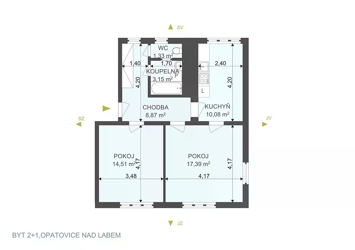 Nabízíme Vám k prodeji byt o dispozici 2+1 v Opatovicích nad Labem, ulice Dvořákova. Byt je v osobním vlastnictví a nachází se ve druhém nadzemním podlaží. Byt je o velikosti cca 63 m² (obytná plocha 55 m² + 7,8 m² dva sklepy). Byt je orientovaný na severovýchod (kuchyň, WC, chodba) a jihozápadní stranu (dva pokoje). Byt je v původním stavu určený ke kompletní rekonstrukci. Byt má zděné jádro, elektřina je v hliníku. Dispozice bytu: kuchyň, chodba, obývací pokoj, pokoj, koupelna, samostatné WC. Na podlaze v obývacím pokoji a v ložnici jsou parkety, na chodbě a v kuchyni je linoleum, na WC a v koupelně je dlažba. Vytápění bytu a ohřev vody zajišťuje plynový kotel Protherm. Bytový dům je po částečné rekonstrukci - zateplení, plastová okna, sklepy (renovace omítek, podlah, dveří). K bytu patří dva sklepy (o velikosti 3, 6 m² a 4,2 m²) a garáž, která se nachází naproti bytovému domu. Lokalita: dobré dopravní spojení - autobus, vlak, dálnice D11; základní a mateřská škola - 6 min. pěší chůzí; potraviny 7 min. pěší chůzí. Obec Opatovice nad Labem se nachází v pardubickém kraji, mezi městy Pardubice (cca 8 km) a Hradec Králové (cca 10 km). Díky své strategické poloze a dobré dopravní dostupnosti vč. napojení na dálnici D11 a blízkosti železniční trati, je ideální volbou pro ty, kteří hledají klidné bydlení v dosahu velkých měst. Obec nabízí veškerou občanskou vybavenost, jako je MŠ, ZŠ, obchody, pošta, restaurace, zdravotnické zařízení, kulturní a sportovní vyžití (např. fotbalové hřiště, sportovní hala či cyklostezky). Financování bytu Vám rádi pomůžeme vyřešit dle Vašich možností a požadavků. Těšíme se na Vás při prohlídce bytu.