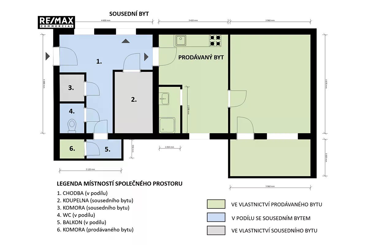 Byt 1+1 v osobním vlastnictví o podlahové ploše 44,2 m² (byt 36 m² + lodžie 7,2 m²) se nachází ve 3. nadzemním podlaží cihlového činžovního domu v ulici Havlíčkova na Jižním Předměstí v Plzni. Pro svoje umístění v centru a menší dispozici je vhodný jak pro vlastní bydlení, tak pro investici. Hlavní přednosti bytu: • Dispozice 1+1 - skvělé řešení pro jednotlivce či pár. • Možnost úprav - byt je v původním stavu a nabízí budoucímu majiteli rekonstrukci podle vlastních představ. Byt může fungovat jako 2+kk. Díky vysokým stropům možnost vytvořit zvýšené spaní. • Klid a výhled- okna i rozměrná lodžie směřují do zeleného vnitrobloku. • Centrum Plzně - kompletní občanská vybavenost je v docházkové vzdálenosti. Dispozice: Vlastní byt tvoří místnost s kuchyňským koutem (14,3 m²) a koupelnovou vestavbou (sprcha, umyvadlo, zásobník na teplou vodu) o ploše 2,4 m². Z této místnosti je vstup do druhého pokoje (19,3 m²), odkud je dále vstup na prostornou lodžii o velikosti 7,2 m² orientovanou do vnitrobloku na severovýchod. Byt se vyznačuje vysokými stropy. K bytu náleží sklepní kóje v suterénu domu (5 m²) a komora na patře (1 m²). Vstup do bytu je přes předsíň, která je ve společném vlastnictví se sousedním bytem. Z předsíně je přístup na společné WC a do komory, dále do koupelny náležící vedlejšímu bytu. Konstrukce a technické parametry: Byt je v původním stavu a připravený na celkovou rekonstrukci. Rozvody elektřiny jsou původní v hliníku. Vytápění je řešeno plynovými topidly (vafky). Společné prostory a možnosti úprav: Předsíň tvoří společný prostor s vlastníkem sousedního bytu (vlastnictví vyznačeno v půdorysu). Pro jakýkoli zásah, rekonstrukci, změnu dispozice a úpravu podílů je vždy nutná spolupráce s vlastníkem sousedního bytu. V samotném bytu se nabízí postavit plnohodnotnou zděnou koupelnu včetně WC. Odpadní potrubí WC by pak bylo vedeno společnou předsíní do svislé šachty. Pro tuto úpravu je opět nutný souhlas s vlastníkem sousedního bytu. Lokalita: Dům se nachází v atraktivní lokalitě Plzeň - Jižní Předměstí, nedaleko od náměstí Republiky (500 m). V bezprostřední blízkosti je kompletní občanská vybavenost: • Školství: gymnázium (300 m), základní škola (250 m). • Doprava: vlakové nádraží Plzeň - Jižní Předměstí (900 m), zastávky MHD ve vedlejší ulici. • Služby a volný čas: obchody, kavárny, restaurace a parky přímo v centru města. Závěr: Byt představuje zajímavou příležitost pro všechny, kteří hledají nemovitost v centru Plzně s možností rekonstrukce podle vlastních představ. Další informace Vám makléř rád sdělí na vyžádání telefonicky, formou samostatné prezentace bytu nebo při osobní prohlídce.