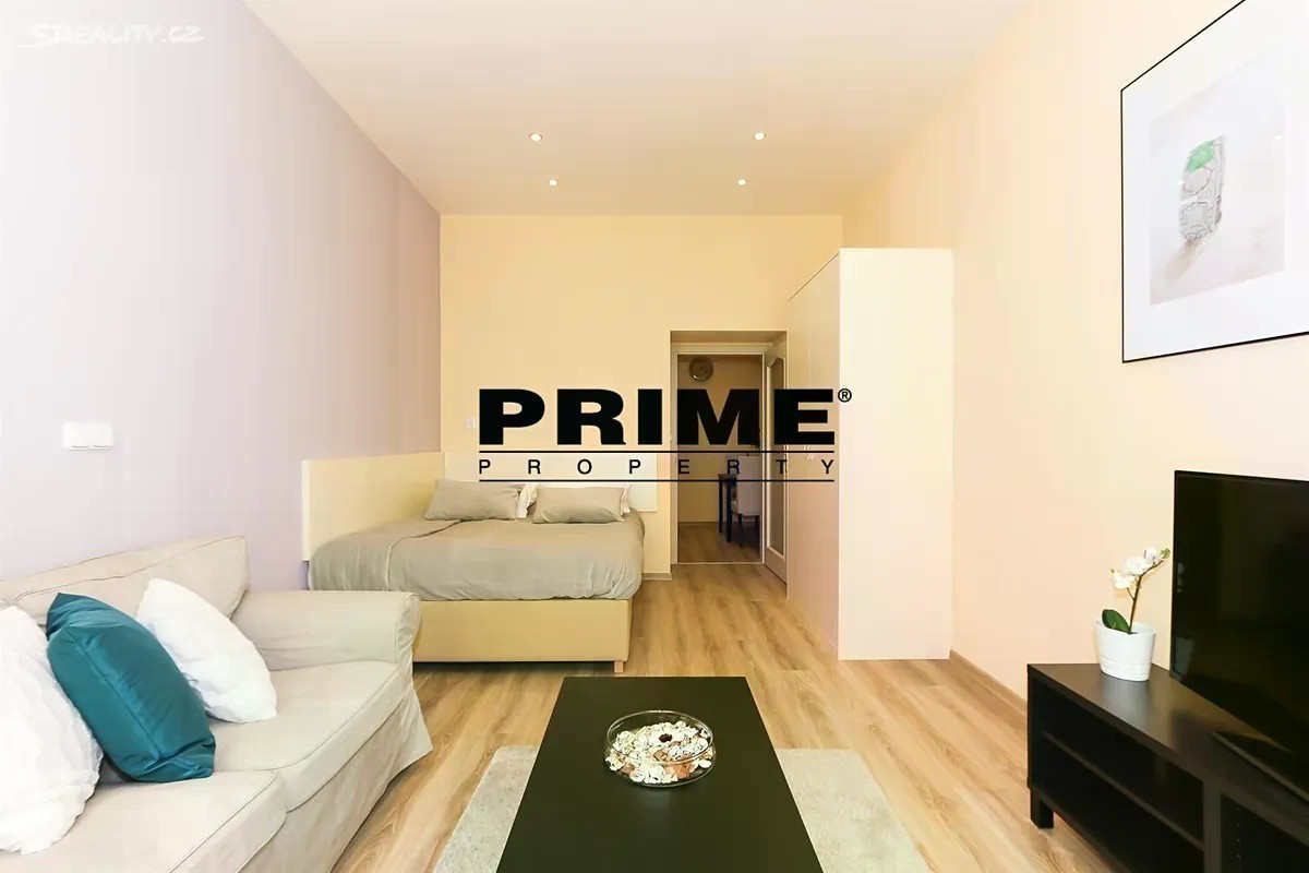 Zařízené studio k pronájmu, 1+1, 40m2, situované ve 2. patře nově kompletně zrekonstruovaného bytového domu s výtahem. Budova se nachází v klidné rezidenční lokalitě na Vinohradech, v blízkosti zastávky tramvaje, 5 minut chůze ke stanici metra Náměstí Míru, 3 minuty chůze do Havlíčkových sadů, blízko obchodů, kaváren a restaurací. Dispozice bytu: vstupní předsíň, průchozí kuchyň s plně vybavenou kuchyňskou linkou se spotřebiči (sklokeramická varná deska, trouba, lednice s mrazákem, myčka, mikrovlnná trouba plus rychlovarná konvice, kávovar, toaster a nádobí), hlavní místnost s obývací částí a částí na spaní a koupelna (se sprchovým koutem, umyvadlem, toaletou a pračkou se sušičkou). Na podlaze jsou laminátové podlahy a dlažba. K dispozici je TV, internetové a satelitní připojení. Možnost pronájmu parkovacího stání v garáži za extra poplatek 2.000 Kč + DPH za stání za měsíc. Nájemné/měsíc (při pronájmu na rok či déle): 23.000 Kč + 3.400 Kč/měsíc fixní služby (včetně internetu a satelitu) + poplatky 2.000 Kč + DPH/osoba/měsíc + provize RK. Možnost také krátkodobého pronájmu na období minimálně jednoho měsíce za vyšší nájemné 38.000 Kč za měsíc (včetně všech služeb a poplatků) + provize RK. K dispozici: od 18.10.2025.