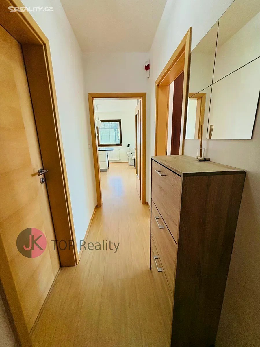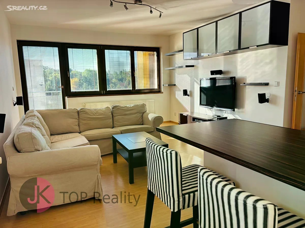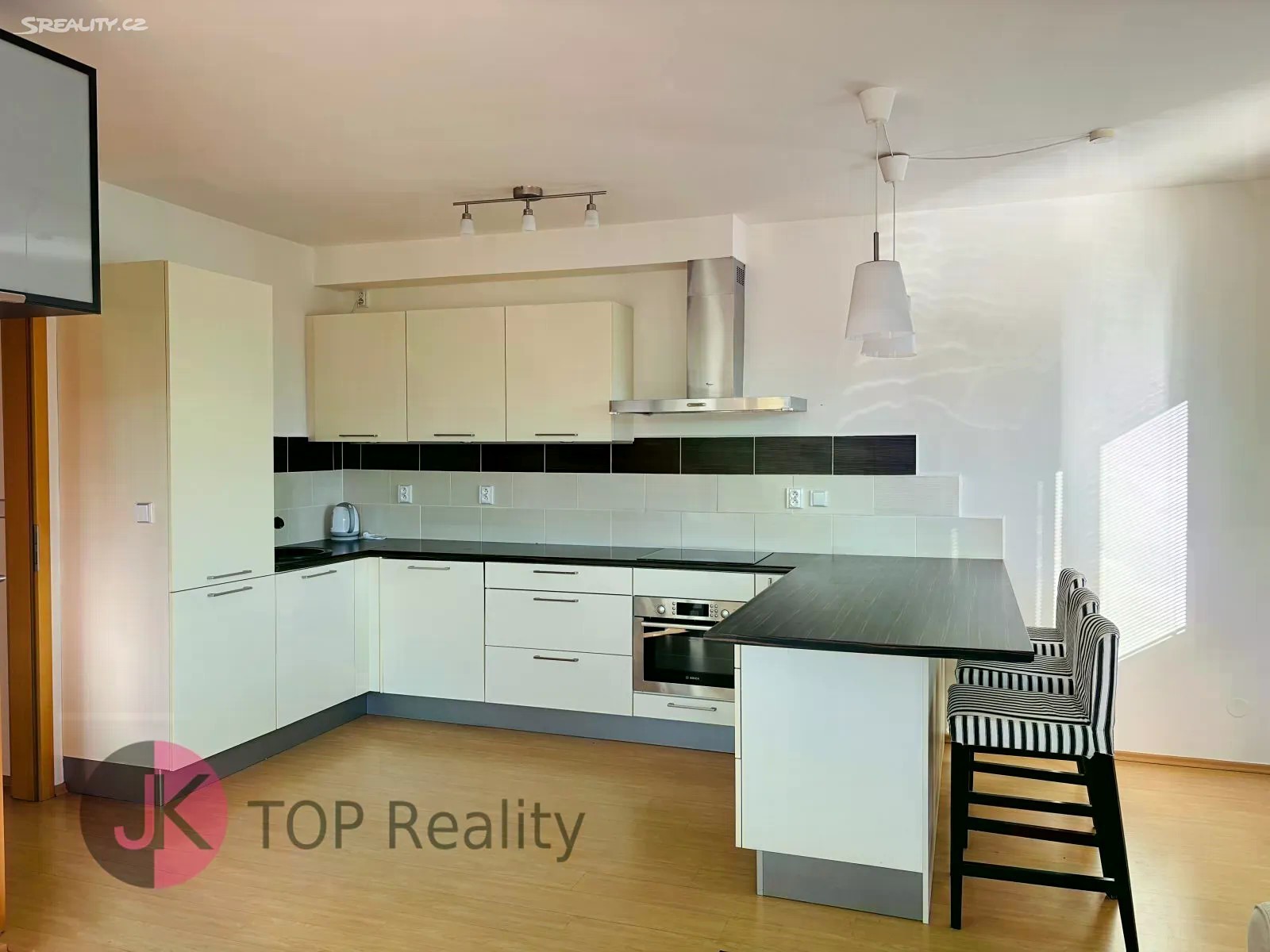 Exkluzivně nabízíme k pronájmu krásný byt s dispozicí 2+kk a rozloze 57 m2 + terasa 7 m2 s nádherným výhledem do zeleně, nacházející se ve 3. patře čtyřpatrové novostavby s výtahem. Byt je vybavený - kuchyňská linka se sklokeramickou deskou a el. troubou, mikrovlnná trouba, lednice s mrazákem, barový pult se židlemi, v obývacím pokoji sedací souprava, konferenční stolek, komody, TV, v předsíni botník, v ložnici dvoulůžko a vestavěné skříně, v koupelně vana, WC a pračka. Na podlaze plovoucí lamino a dlažba. Orientace oken je na J. Parkování před domem. Hezká a klidná lokalita plná zeleně s veškerou občanskou vybaveností v místě. Dostupnost MHD - busem na vlakové spojení či metro. Volné ihned. V případě zájmu kontaktujte realitního makléře.