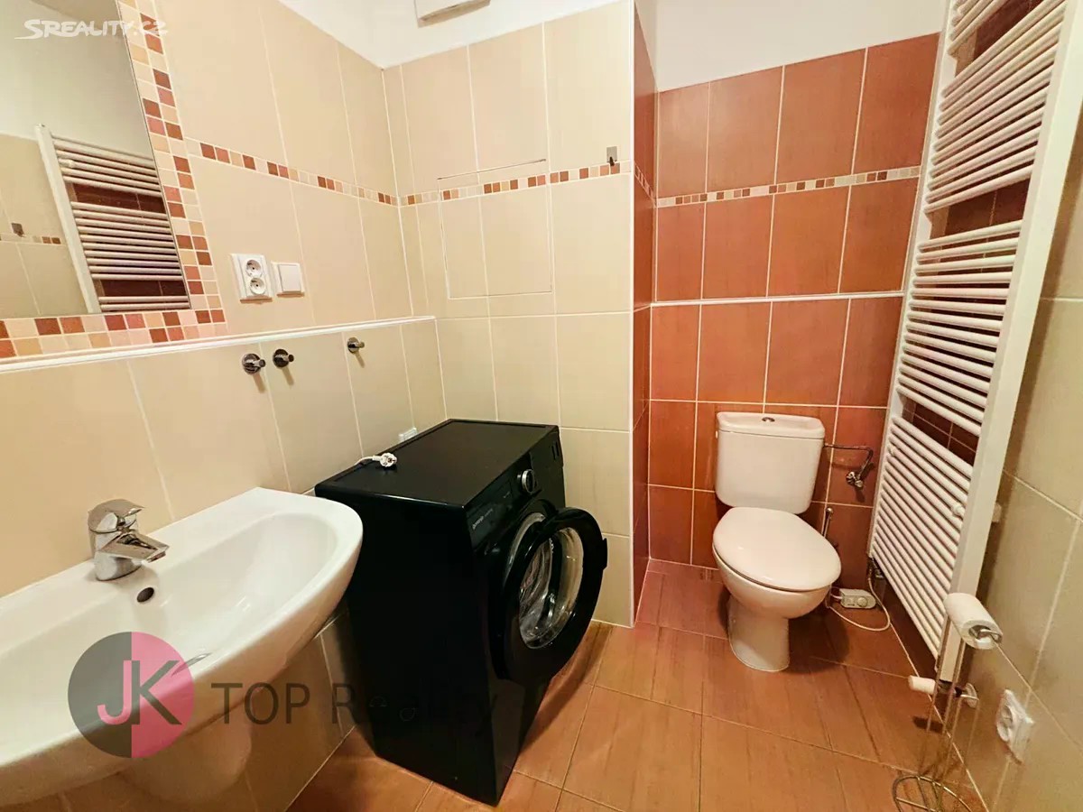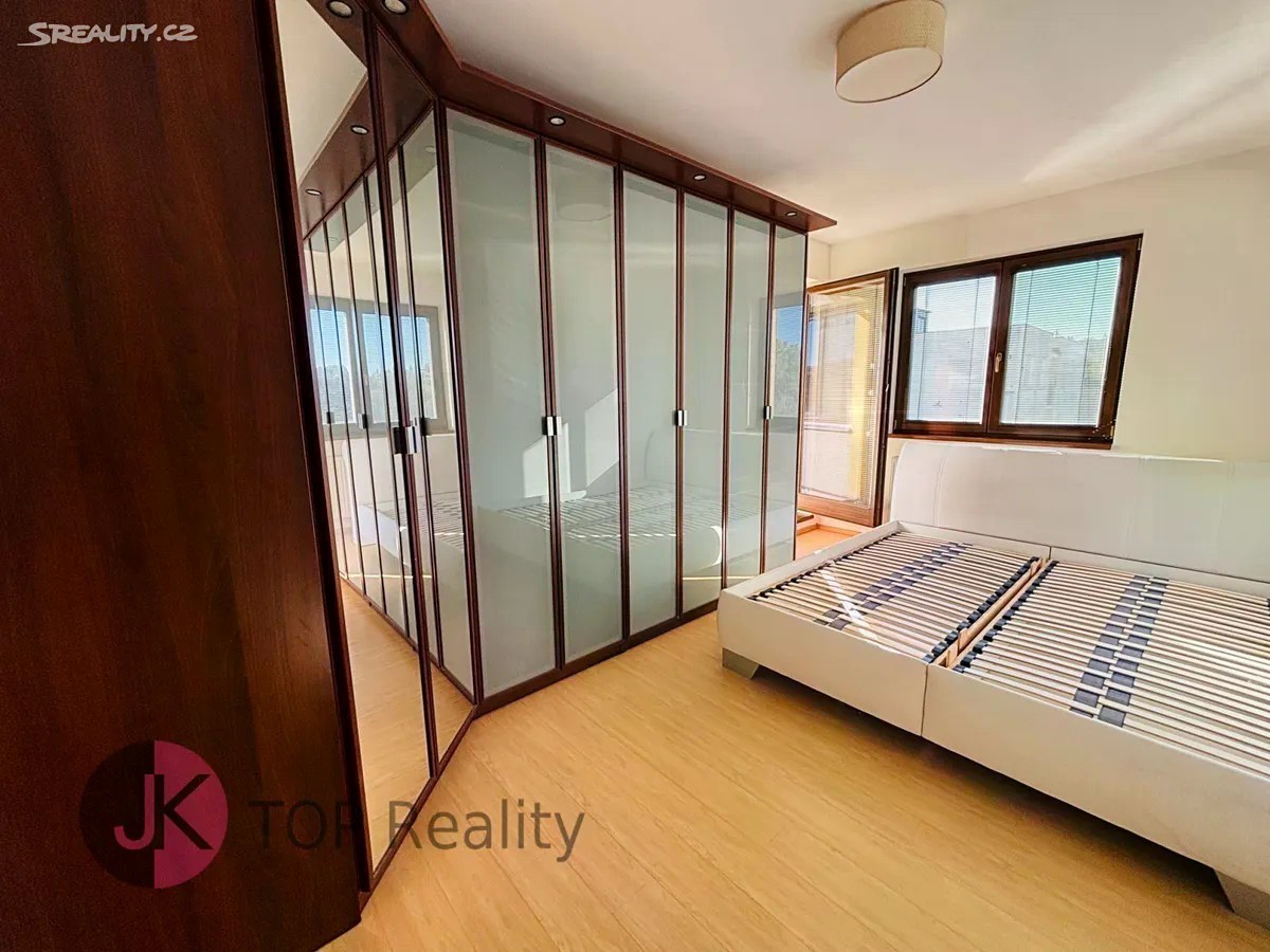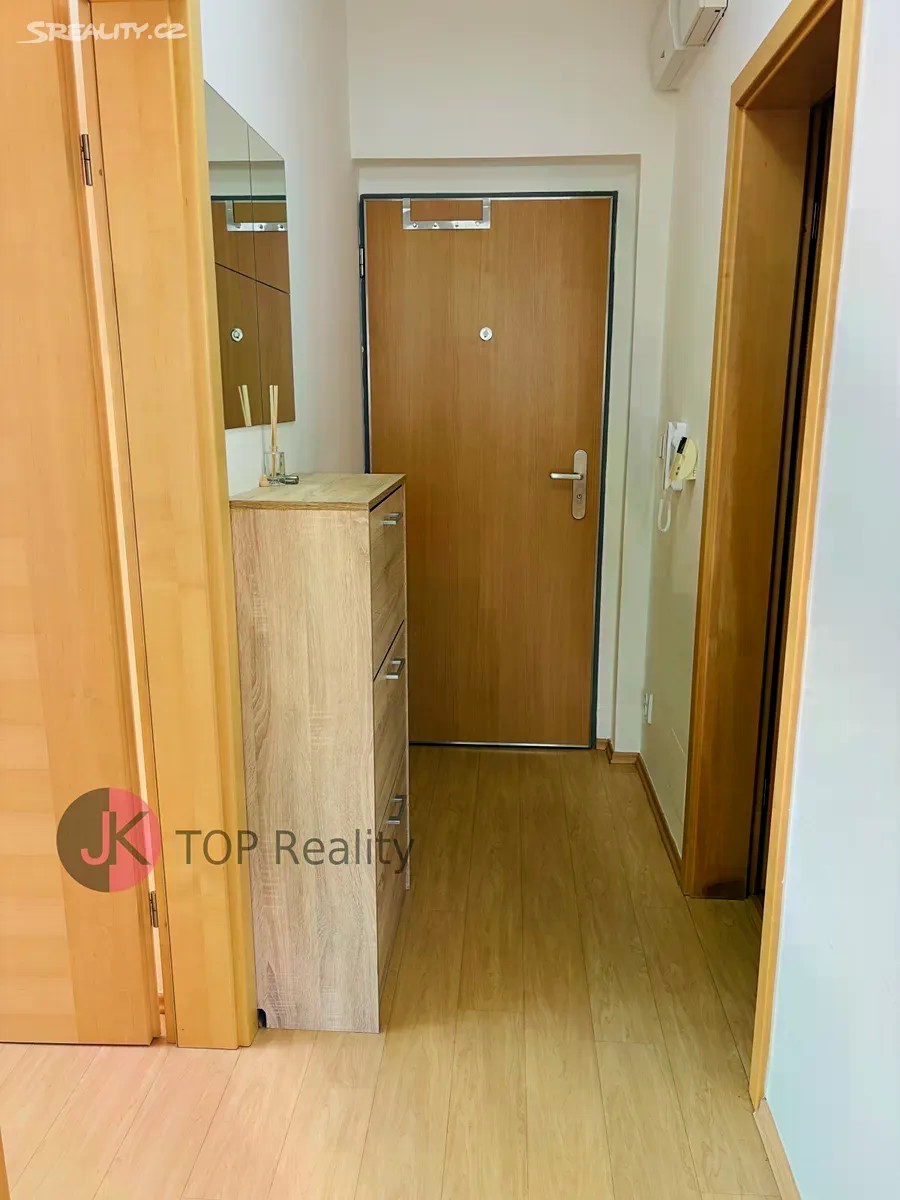 Exkluzivně nabízíme k pronájmu krásný byt s dispozicí 2+kk a rozloze 57 m2 + terasa 7 m2 s nádherným výhledem do zeleně, nacházející se ve 3. patře čtyřpatrové novostavby s výtahem. Byt je vybavený - kuchyňská linka se sklokeramickou deskou a el. troubou, mikrovlnná trouba, lednice s mrazákem, barový pult se židlemi, v obývacím pokoji sedací souprava, konferenční stolek, komody, TV, v předsíni botník, v ložnici dvoulůžko a vestavěné skříně, v koupelně vana, WC a pračka. Na podlaze plovoucí lamino a dlažba. Orientace oken je na J. Parkování před domem. Hezká a klidná lokalita plná zeleně s veškerou občanskou vybaveností v místě. Dostupnost MHD - busem na vlakové spojení či metro. Volné ihned. V případě zájmu kontaktujte realitního makléře.