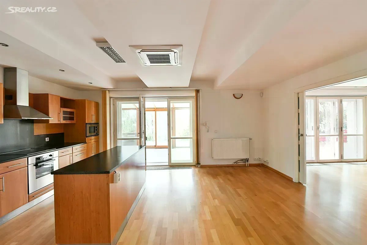 K pronájmu nabízíme prostorný byt 3+kk (101 m²) s celoročně obytnou prosklenou terasou (20 m²) a privátní saunou (8 m²), situovaný v přízemí reprezentativní vily v ulici Komornická, v prestižní lokalitě Prahy 6 - Hanspaulka. Byt je k dispozici ihned. Z bytu je přímý vstup na prosklenou terasu s vytápěním a klimatizací, která slouží jako plnohodnotná obytná místnost - ideální pro jídelnu, pracovnu či další relaxační zónu - a dále do společné zahrady (1 850 m²). Dispozice s převážně jižní orientací zahrnuje prostornou vstupní halu, velký obývací pokoj s kuchyňským koutem, druhý velký pokoj, samostatnou ložnici, dvě koupelny, privátní saunu, a celoročně obytnou terasu. Byt je vybaven alarmem. K bytu náleží 1 vyhrazené parkovací stání a sklep. Nájemné: 48 000 Kč/měsíc. Zálohové platby na služby (včetně topení a elektřiny): 9 000 Kč/měsíc - s ročním vyúčtováním. Tramvajová zastávka Hadovka je vzdálena jen 2 minuty chůze, autobus 131 spojuje Hanspaulku s metrem na Bořislavce a Dejvické. V pěší vzdálenosti najdete dobře zásobený supermarket Albert. V blízkosti je také nové nákupní centrum Bořislavka, vyhlášené zahradnictví Zahradnictví Chládek s oblíbenou restaurací. Z lokality je rychlé spojení nejen do Střešovic, Dejvic a Nebušic - kde sídlí řada mezinárodních škol - ale také na Letiště Václava Havla, kam se pohodlně dostanete autem během několika minut nebo MHD s jedním přestupem.