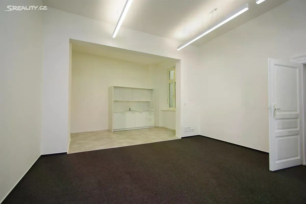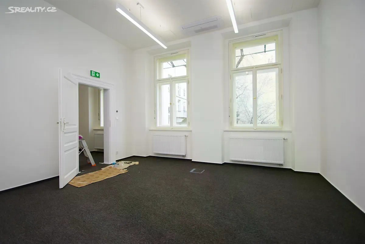 Kancelářské prostory 2+kk s klimatizací, o celkové užitné ploše 77,3m2, jsou situovány ve 2. patře zrekonstruované historické budovy s výtahem, v prestižní lokalitě Nové Město na Praze 1, na Václavském náměstí. Prostory jsou nezařízené a dispozičně nabízí vstupní chodbu (6,9m2), dvě místnosti (24,7m2 a 25,2m2), jednu s čajovou kuchyňkou (12,5m2) vybavenou spotřebiči (varná deska, lednice, myčka), koupelnu (4,4m2) s toaletou a umyvadlem, samostatnou toaletu a úklidovou místnost. V prostorách jsou vinylové podlahy, keramická dlažba a koberce. Ve všech místnostech jsou rozvody sítí (zásuvky, internet, optický kabel). Velmi prestižní lokalita přímo na Václavském náměstí, s veškerou občanskou vybaveností v okolí (supermarkety, nákupní zóna, banky, restaurace, kavárny, bistra, pekárny, a mnoho dalšího) a v blízkosti historických památek centra Prahy. Výborná dopravní dostupnost MHD stanice metra A/C Muzeum, tramvajové zastávky Muzeum/Václavské náměstí. Zálohové poplatky za služby a energie ( včetně topení ) činí 10.700, Kč/měsíčně a elektřinu hradí nájemce přímo dodavateli. Internet není v ceně, hradí nájemce přímo poskytovali služby. Vratná kauce 2 nájmy včetně poplatků. Možnost pronájmu parkovacího místa za poplatek 5500, + DPH/měsíčně plus služby 200, Kč/měsíčně. Provize RK.