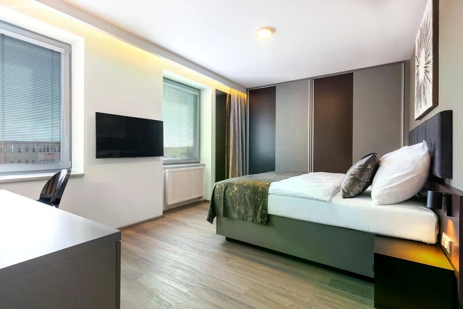 Nabízíme k pronájmu moderně zařízený byt 2+1, o celkové výměře 60 m², ve 6. nadzemním podlaží novostavby s výtahem v Hradci Králové. Jedná se o dva samostatné pokoje s manželskou postelí. Společnou prostornou kuchyní a koupelnou. Interiér bytu je zařízený kuchyňskou linkou s vestavěnými spotřebiči (lednice s mrazákem, varná deska, mikrovlnná trouba). Kuchyň je plně vybavená nádobím k drobnému vaření, jídelní soupravou atd. Kuchyni vévodí velký kuchyňský stůl s židlemi. Oba pokoje jsou vybaveny manželskou postelí s nočními stolky a lampičkami, spoustou úložných prostorů a vlastními TV. Z chodbičky je vstup do koupelny se sprchovým koutem, žebříkovým radiátorem, WC, velkým zrcadlem a vestavěným fénem. Dále je tu možnost zapojení pračky. Byt je opatřený vnitřními žaluziemi a zároveň i zatemňovacími závěsy. Možnost pronájmu parkovacího místa na kamerově hlídaném parkovišti. Součástí domu je recepce s provozem od 7:00 do 22:00. Není požadována kauce, pouze platby nájemného vždy předem.Bez provize RK. Ideální pro krátkodobý i dlouhodobý pronájem. Byt se nachází v klidné části Hradce Králové se skvělou dostupností do centra města. Máte zde veškerou občanskou vybavenost na dosah ruky. V okolí najdete obchody, kavárny, restaurace i kulturní vyžití, přesto lokalita působí příjemně a nabízí pohodlné bydlení. Výbornou dopravní dostupnost zajišťují zastávky MHD. K odpočinku a volnočasovým aktivitám lze využít nedaleké parky (Park na Větvi, Hradecké lesy) či cyklostezky. Lokalita tak spojuje výhody městského života s možností klidného relaxu.