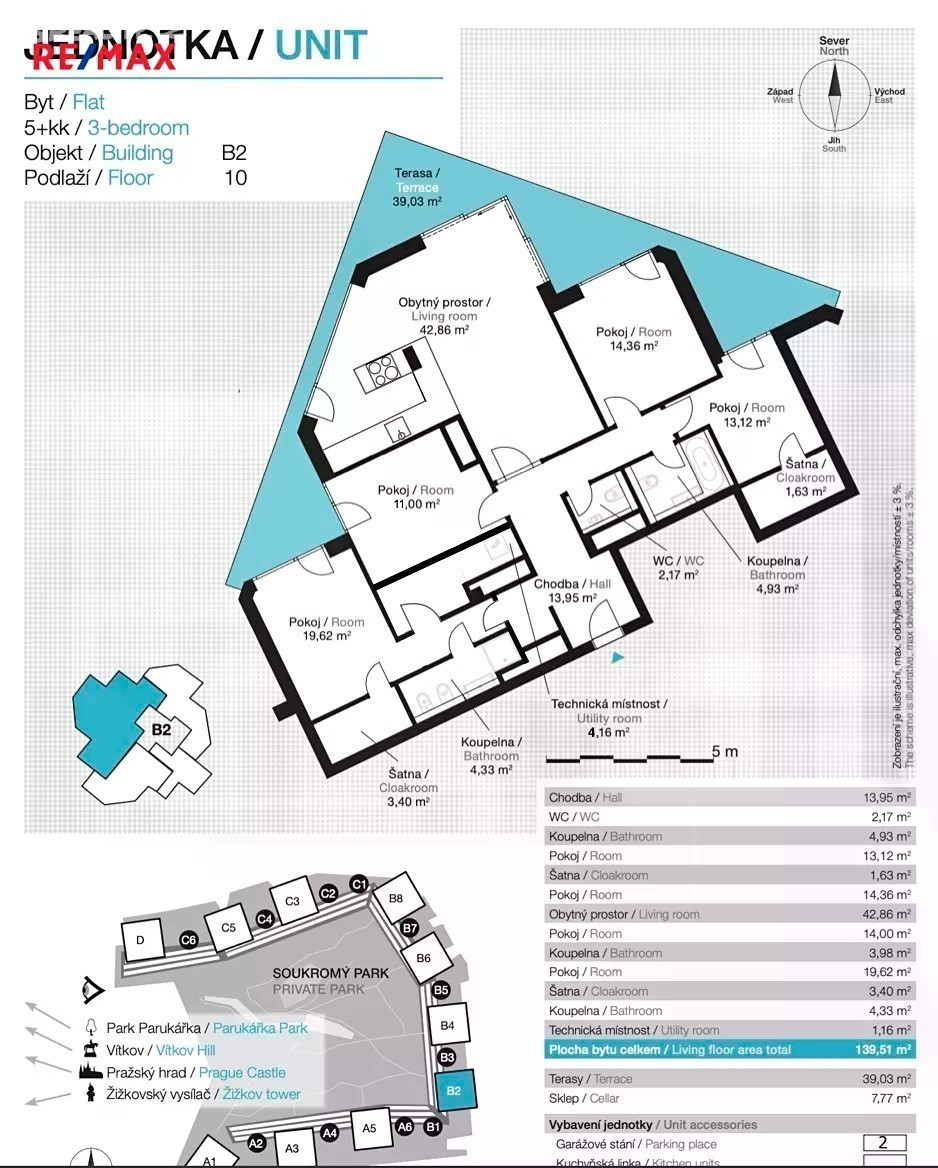 Hledáte moderní, bezpečné a pohodlné bydlení pro Vaši rodinu? Ráda Vám představím světlý a mimořádně prostorný byt 5+kk o ploše 147 m² s terasou 40 m² v rezidenci Central Park Praha - ideální domov pro rodiny s dětmi. Byt se nachází v 10. patře uzavřeného rezidenčního komplexu s privátním parkem o rozloze 15 000 m². Tento jedinečný projekt nabízí veškerý komfort moderního bydlení: 24hodinovou recepci, ostrahu, bezpečné podzemní parkování, dětská hřiště, sportoviště i útulnou kavárnu přímo v areálu. Dispozice bytu: Prostorný obývací pokoj s kuchyňským koutem - ideální pro rodinná setkávání, 4 samostatné ložnice, z toho jedna s velkou šatnou, 2 koupelny s WC, samostatné WC a technická místnost/prádelna, Všechny pokoje mají přístup na terasu, která nabízí krásný výhled na park Parukářka a Žižkovskou věž, Byt je orientován na západ, východ a sever - poskytuje příjemné světlo po celý den a zároveň chrání před přímým přehříváním. Vybavení bytu: Dřevěné podlahy ve všech pokojích, podlahové topení v koupelnách, Velká francouzská okna zajišťují dostatek denního světla a propojení interiéru s exteriérem Centrální klimatizace a elektricky ovládané venkovní žaluzie, Sklep o velikosti 8 m², Dvě parkovací stání v podzemní garáži přímo u výtahu. Bezpečí a pohodlí pro Vaši rodinu: Rezidence Central Park Praha je ideálním místem pro rodiny. Nabízí uzavřený areál s parkem, dětskými hřišti, sportovištěm a kavárnou, nepřetržitou ostrahu a kamerový systém. V docházkové vzdálenosti se nachází park Parukářka, školy, sportovní areály, zdravotnická zařízení i obchody. Centrum města je díky tramvajím a metru vzdáleno jen pár minut. Pokud hledáte prostorný byt v bezpečné a atraktivní lokalitě, který nabízí dostatek prostoru i zázemí pro Vaši rodinu, je tento byt tou správnou volbou. Neváhejte mě kontaktovat pro více informací nebo domluvení prohlídky.