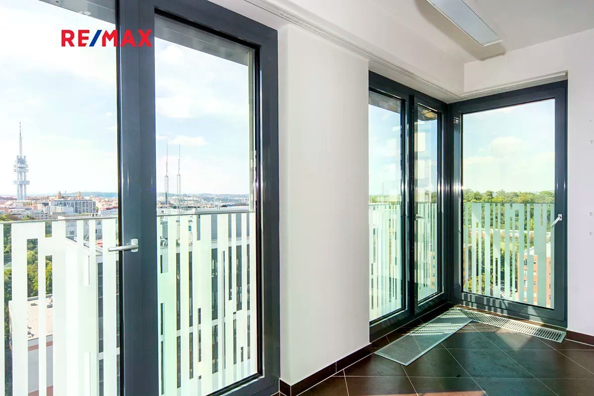 Nabízíme k pronájmu výjimečný byt v centru Prahy s výhledy na současnou moderní architekturu a na druhé straně do zeleně olšanských stromů a Žižkovskou věž. Slunný byt o velikosti 66 m2 se nachází ve 12.podlaží areálu Residence Garden Towers v ulici Olšanská. Světlý byt je částečně zařízen, disponuje obývacím pokojem s kuchyňským koutem a vstupem do zimní zahrady - 9 m2, která je od obývacího pokoje oddělena sklem. Na zimní zahradu je možný vstup i z ložnice. V bytě je prostorná koupelna s vanou a WC, z chodby je vstup do komory. Topení je řešeno podlahovým ústředním topením. K bytu náleží sklepní kóje v suterénu o velikosti 3,2 m2. K bytu je možné si pronajmout i parkovací stání za cenu 2.000,- Kč. Obytný komplex z roku 2016 je složen ze čtyř výškových domů se společnou vstupní recepcí a klidným nádvořím se stromy a parkovou úpravou uvnitř areálu. Nedaleko se nachází park Kapslovna, Parukářka, dětské hřiště, sportovní centrum, bowling, tenisové kurty. Dům se nachází v centru Prahy nedaleko tramvajové zastávky č. 5, 6, 9, 26, 31, nejbližší zastávka metra Flora či Želivského je vzdálena cca 1 km. Měsíční zálohy na poplatky činí 6.500,- Kč, elektřina je ve výši 1.200,- Kč, kauce 53.000,- Kč. Byt je nyní volný a ihned k dispozici.