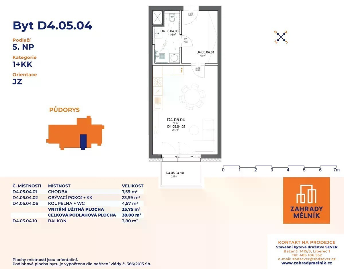 Nabízíme k prodeji moderní družstevní byt v žádaném projektu Zahrady Mělník, Bezručova ul. Jedná se o byt 1+kk o velikosti 38 m2 s balkónem o velikosti 3,80 m2. Byt se nachází v 5. nadzemním podlaží moderní novostavby s výtahem. Součástí bytu a ceny je venkovní parkovací stání a sklepní kóje. Byty se pořizují formou družstevního vlastnictví. Stačí složit pouze 20 % z ceny bytu, zbytek se splácí formou nájmu (anuitních splátek) po dobu 30 let. Není potřeba dokládat příjem ani bonitu - úvěr si bere družstvo, ne jednotliví členové. Možnost převodu bytu do osobního vlastnictví po 5 letech při splacení celé částky. Možnost složení více než 20% ceny bytu a tím docílit nižší splátky. Výstavba probíhá v Bezručově ulici v Mělníku. Předání bytů je plánováno na jaro 2027. Energetická náročnost budovy B. Cena bytu 4 368 191 Kč Cena družstevního podílu 873 638 Kč. Po nastěhování do bytu se hradí měsíční splátka bytu ve výši 18 525 Kč po dobu 30 let (při složení 20% ceny). V rámci projektu Zahrady Mělník nabízíme byty o velikosti 1+kk - 4+kk. Mělník je bohatý historií, vinařskou tradicí a krásnou přírodou. Nabízí veškerou občanskou vybavenost, klidné prostředí, krásné výhledy na soutok Labe a Vltavy, zámek, historické centrum i bohaté kulturní vyžití. Výborná dopravní dostupnost do hlavního města (vlak, bus, auto). Ideální pro rodiny i jednotlivce hledající klidné bydlení s dobrou dostupností.