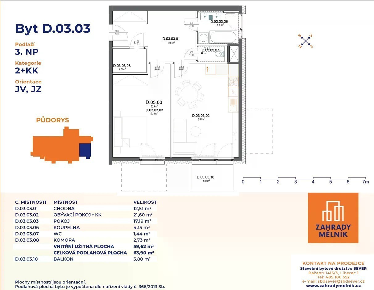 Nabízíme k prodeji moderní družstevní byt v žádaném projektu Zahrady Mělník, Bezručova ul. Jedná se o byt 2+kk o velikosti 63,9 m2 s balkónem o velikosti 3,80 m2. Byt se nachází ve 3. nadzemním podlaží moderní novostavby s výtahem. Součástí bytu a ceny je vnitřní parkovací stání a sklení kóje. Byty se pořizují formou družstevního vlastnictví. Stačí složit pouze 20 % z ceny bytu, zbytek se splácí formou nájmu (anuitních splátek) po dobu 30 let. Není potřeba dokládat příjem ani bonitu - úvěr si bere družstvo, ne jednotliví členové. Možnost převodu bytu do osobního vlastnictví po 5 letech při splacení celé částky. Možnost složení více než 20% ceny bytu a tím docílit nižší splátky. Výstavba probíhá v Bezručově ulici v Mělníku. Předání bytů je plánováno na jaro 2027. Energetická náročnost budovy B. Cena bytu 6 558 752 Kč Cena družstevního podílu 1 311 750 Kč. Po nastěhování do bytu se hradí měsíční splátka bytu ve výši 27 815 Kč po dobu 30 let (při složení 20% ceny). V rámci projektu Zahrady Mělník nabízíme byty o velikosti 1+kk - 4+kk. Mělník je bohatý historií, vinařskou tradicí a krásnou přírodou. Nabízí veškerou občanskou vybavenost, klidné prostředí, krásné výhledy na soutok Labe a Vltavy, zámek, historické centrum i bohaté kulturní vyžití. Výborná dopravní dostupnost do hlavního města (vlak, bus, auto). Ideální pro rodiny i jednotlivce hledající klidné bydlení s dobrou dostupností.
