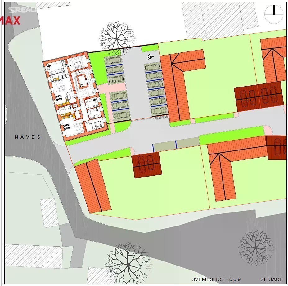 Exkluzivně nabízíme k prodeji výjimečný, luxusní, prostorný byt 4+kk ve druhém patře zděného, energeticky mimořádně úsporného domu postaveného v centru obce Svémyslice, jen pár minut jízdy autem od hranice města Prahy. Celková podlahová plocha bytu je dle prohlášení vlastníka 119,5 m2. Dominantou bytu je obývací pokoj spojený s kuchyní, dále jsou v bytě ložnice se šatnou (o výměře 19,23 m2), dětský pokoj (o výměře 15 m2), vstupní chodba 6 m2, komora, samostatné WC a velká nádherně světlá koupelna s oknem na západní stranu. V koupelně je vana i sprchový kout a příprava na instalaci dvojumyvadla, pračky a sušičky. Byt je zcela nový a byl vystavěn v bytovém domě z roku cca 1916, kdy při rekonstrukci a výstavbě šesti bytů v tomto domě zbyly pouze původní obvodové a nosné zdi. Nové jsou stropy, podlahy, vnitřní příčky, střecha a samozřejmě veškeré rozvody v bytech i v domě. Budova je zděná se zateplením a díky rekuperačním jednotkám, které jsou umístěné v každém pokoji dosahuje PENB - A, mimořádně úsporná budova. Automatická výměna vzduchu/rekuperace Vám zajistí nejen velmi úsporné vytápění bytu, ale také neustálý přísun čerstvého vzduchu bez nutnosti otvírání oken. Vytápění bytu je komfortní - podlahové teplovodní. V domě je zaveden vysokorychlostní internet. Na všech střešních oknech jsou vnější žaluzie s elektrickým ovládáním. Orientace bytu je velice příznivá. Ložnice jsou směrem na severovýchod a světlý obývací pokoj má výhled na jih a do centra obce na západ. Vytápění a ohřev teplé vody je centrální, pomocí nové plynové kotelny v domě. K bytu náleží zděný sklep 6 m2 a dvě venkovní parkovací stání přímo u domu. Pár kroků od domu je MŠ, basketbalové a dětské hřiště, obecní úřad, kostel a autobusová zastávka ze které se pohodlně dostanete do Letňan nebo na Černý most. Dva kilometry od domu je nádraží Zeleneč, odkud se vlakem dostanete za 20 minut na Hlavní nádraží do Prahy nebo za 13 minut do Vysočan. Osobní vlastnictví - možnost financování hypotékou. V domě dále nabízíme bytové jednotky o velikosti 3+kk - 4+kk.