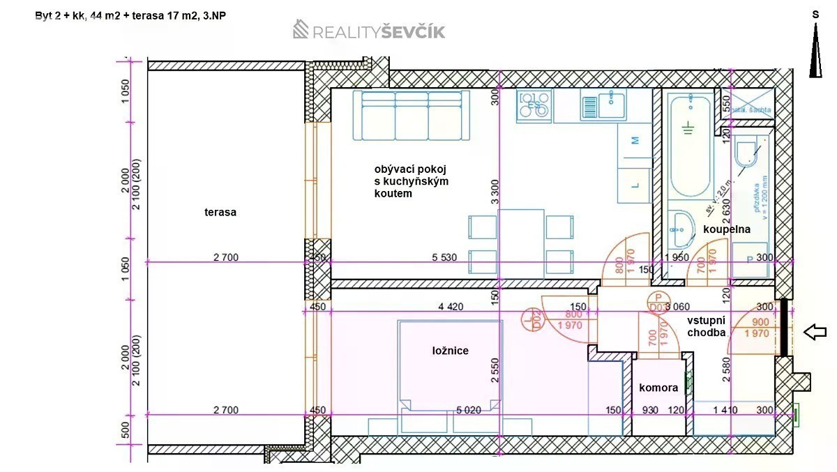 Nabízíme k pronájmu krásný slunný byt 2+kk o výměře 44 m2 s terasou 17 m2 v novostavbě bytového domu v ul. Potoční v Hluboké nad Vltavou. Byt je umístěn v 3.NP nového bytového domu (s výtahem) v Hluboké nad Vltavou v blízkosti OD Billa. Byt se stává ze vstupní chodby, samostatné komory, koupelny s vanou a WC, dále pak z obývacího pokoje s kuchyňským koutem a samostatné ložnice. Z obývacího pokoje a z ložnice je vstup na krásnou terasu, která je situována na západ. Součástí bytu je kompletní osvětlení všech pokojů, dále pak vybavená kuchyňská linka včetně elektrospotřebičů (sklokeramická deska, trouba, digestoř a myčka). Na podlahách jsou dlažby a vinyl v dekoru dřeva. Vytápění a ohřev vody je zajištěn centrálním kotlem na plyn a v každém bytě je rekuperační jednotka. K bytu náleží sklepní kóje o výměře 2,5 m2 a parkovací stání pro jeden vůz přímo před domem. Měsíční nájemné: 15.500 Kč Zálohy na energie a služby: 4.500 Kč Jistota (kauce): 30.000 Kč Provize RK: 15.000 Kč Byt volný od 1.11.2025. Pro více informací nebo domluvení prohlídky nás neváhejte kontaktovat. Rádi vám poskytneme bližší informace v naší realitní kanceláři.