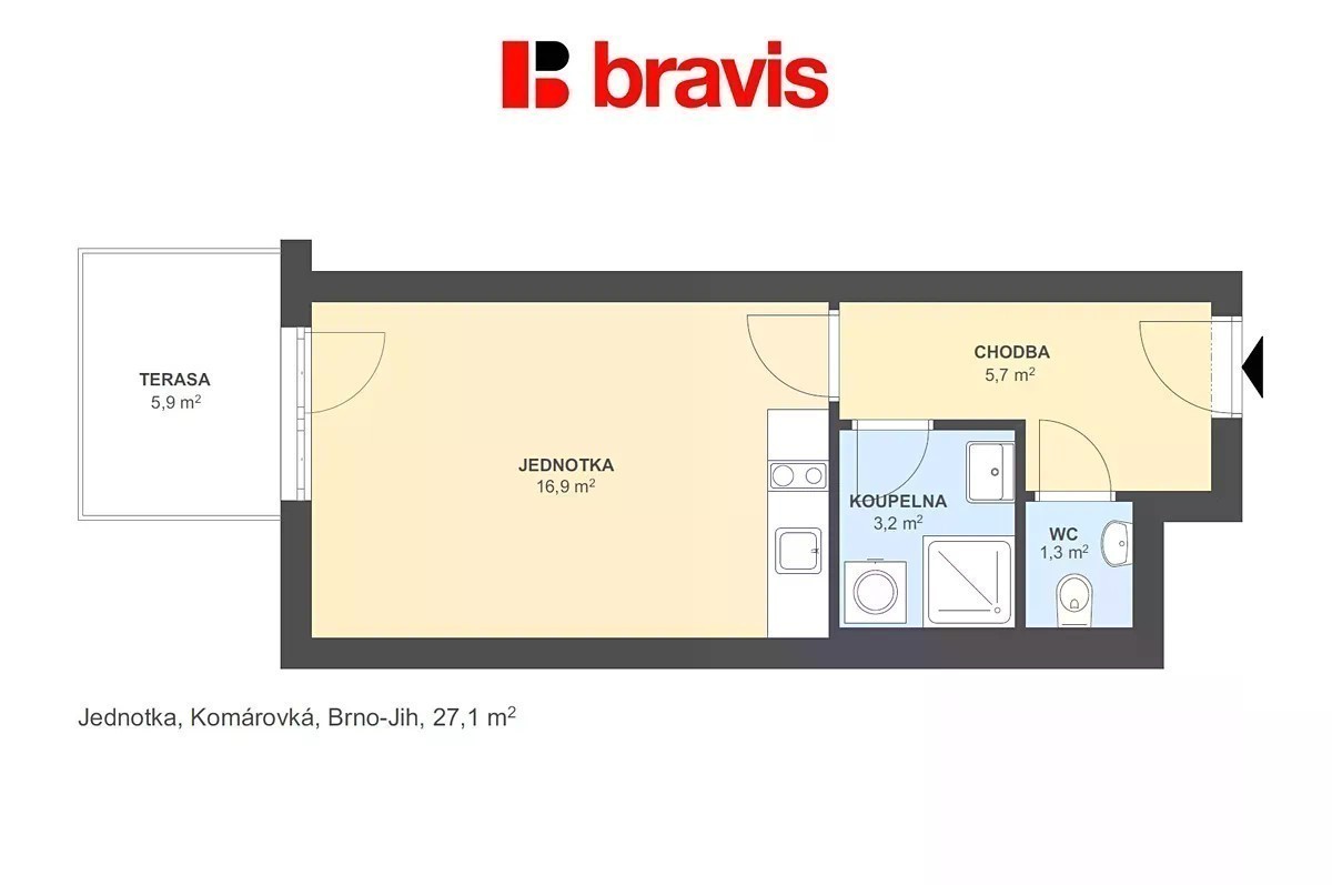 Pronájem bytu 1+kk 28 m² Komárovská, Brno - Komárov