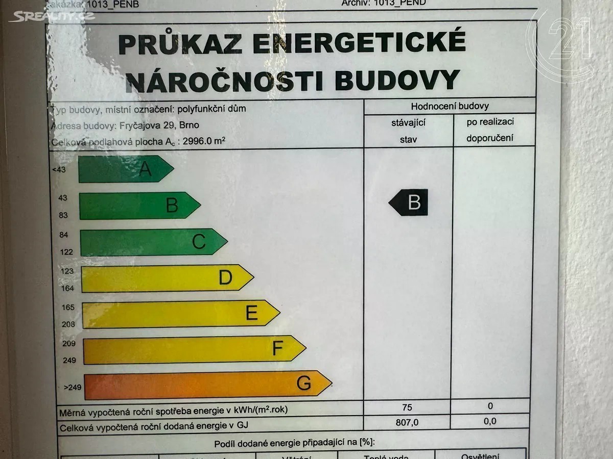 Nabízíme vám krásný byt 3+kk s terasou v polyfunkčním domě s wellness a fitness na ulici Fryčajova 29 v Brně. Byt je k dispozici od 1.10.2025. Byt má dispozici 3+kk o rozloze 74 m². Rozložení bytu je následující: vstupní chodba s prostorem na skříň a vstupem do koupelny s velkoformátovým oknem, vanou a toaletou, obývací pokoj s kuchyní velkoformátovými francouzskými okny směřujícími na terasu 4,7 m² (orientace S), přes který je vstup do dvou samostatných ložnic. Kuchyně je vybavena horkovzdušnou troubou a indukční deskou. Byt se pronajímá nevybavený. Možnost pronájmu vyhrazeného parkovacího stání u domu 900 Kč/měsíčně. Dům má kolárnu přístupnou jen pro residenty. Služby domu 1.200 Kč/byt. Zálohy na energie jsou 3.900 Kč/měsíc ( + voda 350 Kč/os do 2 osob, každá další osoba + 400 Kč). Majitel požaduje dva nájmy jako jistotu/kauci včetně služeb a záloh na energie tedy 57.800 Kč a provize pro RK je jeden nájem vč. služeb + 21 % DPH tedy 35.211 Kč. Ideální nájemce je singl, pár, pár s jedním nebo dvěma dětmi bez zvířat. V domě je Wellness 4Comfort, fitness, pekárna, řeznictví, kadeřnictví. Na ulici Fryčajova je dále pošta, potraviny, kavárna a další služby. MHD v dosahu ať už autobus nebo tramvaj č. 4. V blízkosti pak Billa a nově se staví Lidl. Okolí je ideální pro cyklistiku a turistiku podél řeky Svitavy. Pro bližší informace kontaktujte makléře Petra.