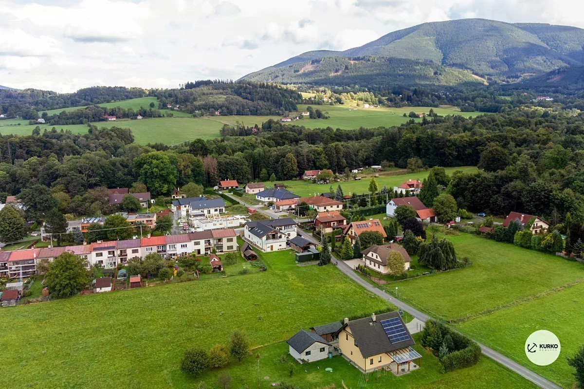 Hledáte domov, kde se snoubí komfort moderního bydlení s kouzlem Beskyd? Tento jedinečný byt o velikosti 202 m² nabízí právě to. K dispozici máte i terasu 34 m² s panoramatickým výhledem na hory, ideální pro rodinné snídaně i večerní posezení. Samozřejmostí je i vlastní dvojgaráž (30 m²). Byt se nachází v domě se třemi jednotkami a má svůj vstup v přízemí se zádveřím a chodbou. Obytná část je velkorysá, obývací pokoj s jídelnou a moderní kuchyní na míru působí vzdušně a elegantně. Navazující pokoje nabízí dostatek soukromí a variabilitu, v případě potřeby lze dispozici jednoduše rozšířit na 5+kk. Interiér je řešen s citem pro detail: podlahové vytápění, tepelné čerpadlo a kvalitní zateplení zajistí nízké provozní náklady, zatímco přiznané trámy a designové stěrky dodávají prostoru charakter. Hlavní koupelna kombinuje vanu i walk-in sprchu, druhá koupelna u ložnice pak přidává komfort v podobě vlastního zázemí. Nechybí ani spíž u kuchyně či menší skladovací prostory v chodbě - prostě domov, kde se myslí na vše. A proč právě Čeladná? Protože je to perla Beskyd. Nabízí kompletní občanskou vybavenost - školu, školku, obchody, služby, k tomu stylové kavárny a luxusní restaurace. Milovníci sportu ocení prestižní golfové hřiště Prosper Golf Resort, turistické trasy i cyklostezky. Čeladná patří mezi nejžádanější lokality regionu: bezpečná, klidná a zároveň společensky živá. Tady získáte nejen bydlení, ale také životní styl. Neváhejte nás kontaktovat, rádi vám poskytneme více informací, domluvíme osobní prohlídku nebo vám byt ukážeme i online přes videohovor. Náš zkušený hypoteční specialista vám zdarma pomůže najít nejlepší finanční řešení.