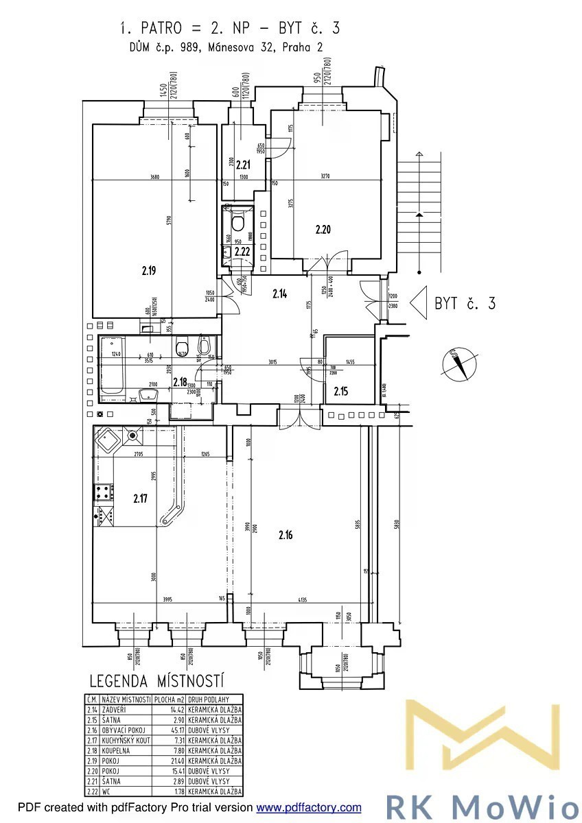 K pronájmu nabízíme zařízený byt č. 3 o dispozici 3+kk s podlahovou plochou 125 m2, situovaný v 1. patře (2. nadzemní podlaží) honosné secesní budovy s výtahem v ulici Mánesova na Praze 2 - Vinohrady. Půdorys bytu tvoří vstupní předsíň se šatnou, prostorný obývací pokoj s kuchyňským koutem a jídelní částí, hlavní ložnice se soukromou šatnou, druhá ložnice, 1 koupelna (s vanou, umyvadlem, bidetem a toaletou) a toaleta pro hosty. Další vybavení bytu: kuchyňská linka včetně lednice s mrazákem, plynové varné desky, digestoře, myčky, elektrické a mikrovlnné trouby; přípojka pro pračku a sušičku, příprava pro vysokorychlostní internet, bezpečnostní alarm, kamerový systém v budově, dřevěné podlahy a dlažba. Možnost napojení na bezpečnostní službu za příplatek. Možnost pronájmu parkovacího stání v garáží za extra poplatek 4.500,- Kč/měsíc + DPH 21% 5.445,- Kč/ měsíc. Prozatím je uvedena dostupnost od 1.10.2025. V bezprostředním okolí naleznete veškerou občanskou vybavenost - restaurace (Pizzeria Grosetto, Restaurace Caesar, Restaurace Kravín), kavárny (Namleto, Monolok, Café Fragola), supermarkety (Albert), lokální obchody, školy, školky. Z náměstí Míru je plánovaná autobusová linka do prestižní mezinárodní školy Prague British International School. Skvělou dopravní dostupnost - stejnojmenná zastávka tramvaje a metra A - Náměstí Míru, snadná dostupnost na Hlavní nádraží. Měsíční nájemné ve výši 37.000,- Kč/měsíc plus poplatky 6.500,- Kč/měsíc (domovní služby a služby za byt), internet 400,- Kč/měsíc. Požadovaná jistota činí 2 měsíční nájmy. Požadovaná délka pronájmu je 1 rok s preferencí delší nájemní smlouvy. Ubytování formou Airbnb není možné realizovat Třída energetické náročnosti budovy je dle vyhlášky 78/2013 Sb. klasifikována D.