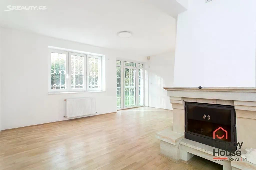 Exklusivně nabízíme pronájem nezařízeného, samostatného rodinného domu o dispozici 7+2x kk v ulici U Albrechtova vrchu v Praze 5 Stodůlkách. Dům o obytné ploše 333 m2 disponuje třemi nadzemními podlažími, které zahrnují garáž i prostornou terasu, zahradu a nachází se na pozemku o celkové výměře 1 137 m2. V přízemí (94,52 m2) se nachází vstupní hala se schodištěm, zádveří, pokoj pro hosty s vybaveným kuchyňským koutem, koupelna se sprchovým koutem, oddělená toaleta, šatna a garáž pro jedno auto. V 1. patře (147,88 m2) je hala se schodištěm, obývací pokoj s krbovými kamny a plně vybaveným kuchyňským a jídelním koutem, spíž, pracovna, koupelna se sprchovým koutem, oddělená toaleta a technická místnost. Je zde také vstup na rozlehlou terasu (60,39 m2) a do zatravněné zahrady (1 037m2). Ve 2. patře ( 90,6 m2) se nachází 4 prostorné ložnice z niž dvě mají přístup na balkón a třetí má prosklenou niku, dále šatna, koupelna s vanou a sprchovým koutem a oddělená toaleta. Dům je vybaven bezpečnostními prvky (alarm, v přízemí mříže) a centrálním vysavačem. V pokojích jsou plovoucí podlahy jinde dlažba. Vytápění domu a ohřev teplé vody zajišťuje plynový kotel. Na pozemku se dále nachází jedno parkovací stání, další možnosti parkování jsou na ulici. Celkově je dům je v perfektním stavu a vzhledem k jeho velikosti si zde každý najde své soukromí. Jedná se o klidné místo v residenční čtvrti přímo vedle Prokopského údolí s výhledem do zeleně. Stanice autobusů asi 5 min. chůze a dále pár min jízdy na metro B nebo přímo metro B Nové Butovice do 10 min chůze od domu. V sousedství je soukromá MŠ a veškerá občanská vybavenost. Poplatky se hradí zvlášť, kauce 2 měsíční nájmy. Energetický štítek není k dispozici, proto je odhadem uvedena třída D. Dlouhodobý pronájem vítán. Volné od ledna 2026.