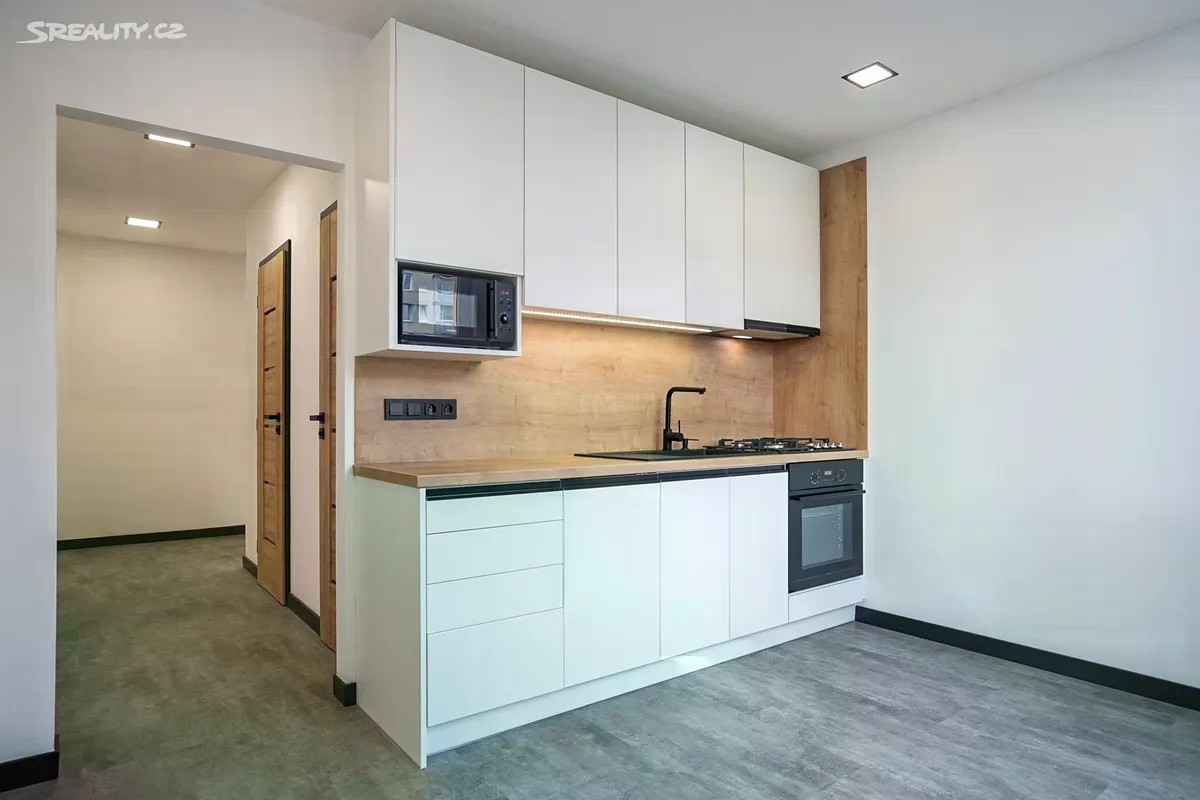 Nabízíme k pronájmu zcela nově zrekonstruovaný byt o dispozici 3+1 s užitnou plochou 71 m², který se nachází v klidné části městské části Brno-Líšeň na ulici Strnadova 5. Součástí bytu je navíc revitalizovaný balkon 5 m2, který bude v nejbližší době vybaven zcela novým posuvným zasklením. Dále pak zcela jistě využijete sklepní prostor o velikosti 2,4 m², nebo také kolárnu. Byt čeká na úplně první nájemníky a je po zdařilé, generální rekonstrukci, během níž bylo kompletně vyměněno veškeré vybavení od podlahy ke stropu. Dispozice a vybavení: Dispozičně byt tvoří tři samostatné pokoje o výměrách cca 13 m², obývací pokoj o velikosti 19 m² a kuchyně 10 m². Pokoje jsou prostorné a krásně prosvětlené, což zajišťuje příjemnou atmosféru bytu. Součástí bytu je moderní ambientní LED osvětlení v podhledech, které je úsporné a umožňuje nastavit barvu i intenzitu svitu. Ovládání je řešeno nástěnným panelem v každé místnosti zvlášť, které můžete mít po ruce například když zrovna sedíte u televize. V bytě byly položeny nové vinylové podlahy a doplněny o detaily, které zvyšují komfort užívání - např. množství zásuvek, dřevěné dveře s prosklením, promyšlené řešení koupelny a bezpečnostní vstupní dveře. Nová okna ve všech místnostech a balkonové dveře jsou vybaveny žaluziemi. Kuchyňská linka na míru obsahuje vestavěné spotřebiče: horkovzdušnou troubu, plynovou varnou desku, mikrovlnnou troubu a myčku na nádobí. V případě zájmu je možné vybavení rozšířit o lednici a pračku. Další výhody jsou: Možnosti parkování jsou přímo před domem a není zde zónové parkování, v blízkosti se nachází dětské hřiště i venkovní fitness. Samotný bytový dům prošel rekonstrukcí a dosahuje energetické třídy C, což pro Vás znamená nižší provozní náklady. Náklady na bydlení • Nájemné: 24 000 Kč / měsíc • Energie a služby (včetně elektřiny a plynu): 4 140 Kč / měsíc • Vratná kauce: 30 000 Kč • Provize RK: 24 000 Kč Lokalita: Líšeň nabízí kompletní občanskou vybavenost - základní a mateřské školy, obchody, lékaře, sportoviště i dostatek zeleně. V bezprostředním okolí ulice Strnadova se nachází obchody, zastávky MHD - Novolíšeňská, noční bus č. N98, avšak i další služby. Dopravní spojení do centra Brna zajišťují tramvajové linky č. 8 a 10, které vedou přímo z Líšně přes Židenice až do centra. Díky tomu je cesta do centra rychlá a pohodlná. V docházkové vzdálenosti od domu se nachází supermarket Billa, čerpací stanice MOL, pošta, lékárna i menší obchody a služby, takže veškerou potřebnou občanskou vybavenost mají obyvatelé doslova po ruce. V centrálním parku Rokle v Líšni bylo vybudováno nové dětské hřiště, část fitparku a víceúčelové sportovní hřiště, které slouží pro běh, cvičení v outdoor fitness zónách a další aktivity. V lokalitě je i paintballové hřiště Paintballwood pod Velkou Klajdovkou, které nabízí zázemí a terény pro paintball, a v areálu jsou i tenisové kurty. Byt je k dispozici ihned a čeká na své první nájemníky. Budeme se těšit při prohlídce.