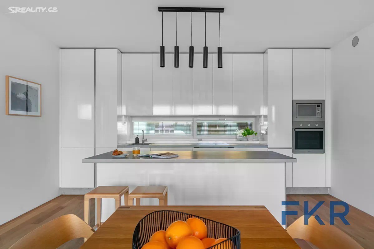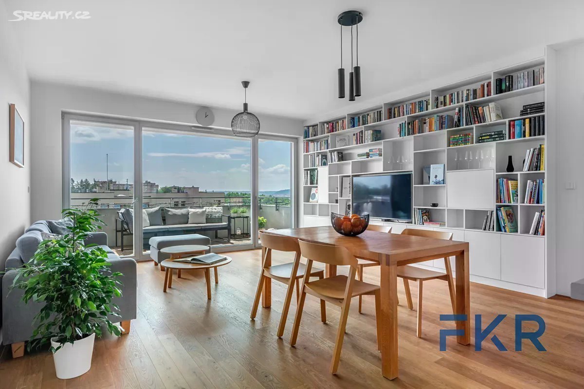 Prémiové 4+kk s výhledem, který vás nikdy neomrzí. Nový domov, kde se spojuje styl a pohoda, nadčasový interiér navržený s respektem ke každodennímu tempu moderní rodiny a prostor pro klid, odpočinek i radost ze společných chvil. Výhled na Prahu vás okouzlí nejen ráno, ale i večer. K hlavním benefitům tohoto bydlení patří šikovně navržená dispozice přinášející soukromí, komfort a pohodu. Oceníte i fakt, že v celém domě je pouhých deset bytů, žádné anonymní bydlení, ale komorní a přátelské prostředí. Lokalita vás potěší skvělým spojením - tramvaj i stanice metra linky C jsou pohodlně v docházkové vzdálenosti. Samotné bydlení pak přináší řadu chytrých a přitom jednoduchých řešení, která usnadňují každodenní fungování a zvyšují celkový komfort. Na 105 m2 už velmi často očekáváme, že to bude to pravé. Byt A2 se dost přibližuje ideálnímu 4+kk. Čekají na vás 3 neprůchozí pokoje s orientací a pohledem do středu města. Dvojice koupelen byla vhodně orientována na druhou stranu, což umožnilo koupelnám dopřát denní světlo. Hlavním tahákem je obývací část s ideálním tvarem a výměrou 40 m2, která je prodloužena o krytou terasu 10 m2. Byt neztrácí zbytečné m2 na místech, kde nejsou potřeba. Klienti, kteří touží po velkém množství úložných prostor budou muset lehce přivřít oči a přijmout fakt, že i tento byt má své limity. Vášnivé čtenáře nadchne velká vestavná knihovna a milovníky jídla 5metrová kuchyně s velkým ostrůvkem. Interiér působí příjemně a čistě díky kombinaci vestavného nábytku v bílém dekoru a dubové podlahy s lehkým kartáčováním. Výsledkem je nadčasový základ, který snadno doladíte podle vlastního vkusu. Nemovitost je vybavena podlahovým vytápěním a předokenním stíněním. Budova využívá technologii pro zadržování dešťové vody, která přispívá k úspoře provozních nákladů (aktuální výše kompletních služeb činí 8 010 Kč/měsíc). PENB (B). Samozřejmostí jsou kvalitní bezpečnostní dveře, prémiová sanita, individuální nastavení topných zón i stínění. Společné prostory jsou osazeny kamerovým systémem, garáže pak připraveny pro možnost instalace dobíjecí stanice pro elektromobil. Lokalitu a umístění stavby ocení jak aktivní sportovci, tak rodiny s dětmi. Na své si přijdou i starší ročníky, a to díky plné bezbariérovosti a plné okolní vybavenosti. Podrobnosti najdete na webu nemovitosti včetně půdorysu a dalších informací.