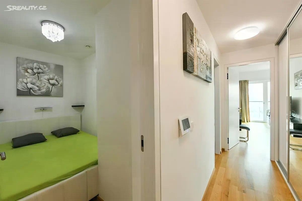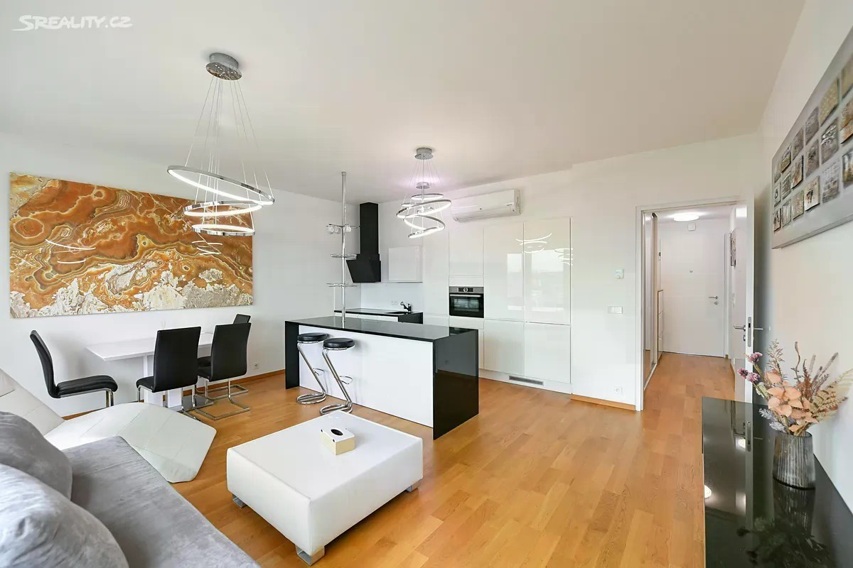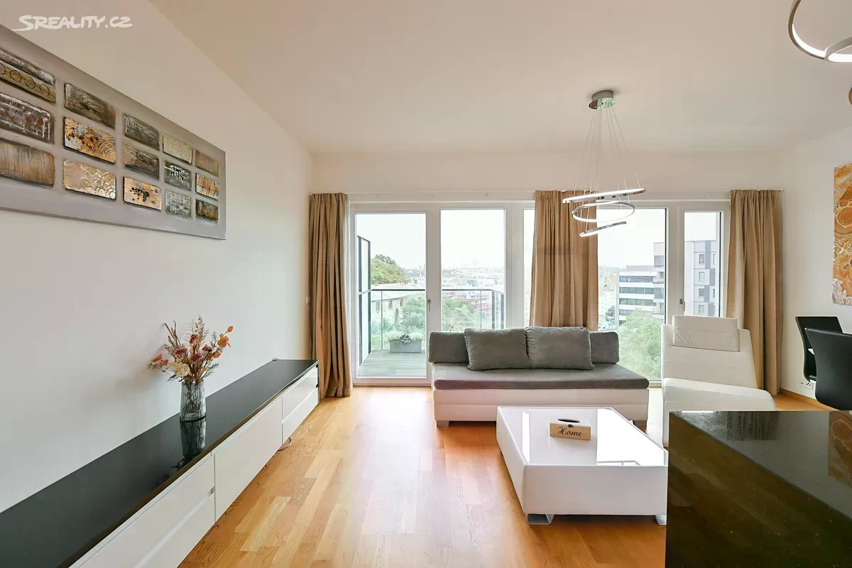 Luxusní apartmán v projektu Sacre Coeur 2, ulice Holečkova Bydlete v nadstandardním apartmánu v Rezidenci Sacre Coeur 2: Projektu bezstarostného bydlení s nepřetržitou recepcí, ostrahou objektu a privátním parkováním zasazeného do prostředí mezi parkem Sacré Coeur či zahradou Kinských! Lokalita tak umožňuje nejen dlouhé procházky v přírodě, ale i velmi rychlé spojení s jakoukoliv částí Prahy včetně letiště. Pečlivě navržený byt ve 3. nadzemním podlaží je proveden ve vysokém standardu s důrazem na použitý materiál, funkčnost a nároky moderní doby. Tento prostor je flexibilní vhodný pro bydlení i podnikání. Do bytu nás uvede prostorná chodba, která je rozcestníkem do všech samostatných místností: obývací pokoj s kuchyní, balkónem a výhledem na Vyšehrad či VTower, koupelna s WC, umyvadlem a sprchovým koutem a místnost na spaní pro jednu až dvě osoby. Shrnutí prostorového řešení, vybavení a zařízení apartmánu: obývací pokoj s kuchyní, chodba, koupelna s WC, umyvadlem a sprchovým koutem, místnost na spaní, balkón. Kuchyňská linka s vestavěnými spotřebiči: lednice, mraznička, trouba, mw trouba, myčka atd., jídelní sestava pro čtyři osoby, sofa, TV úložná sestava, vestavěné skříně ve vstupní části apartmánu, botník, pračka. Podlahy obývacího pokoje, místnosti na spaní a chodby jsou dubové, v koupelně je velkoformátová dlažba. Celková užitná plocha bytu je 54 m2. K nastěhování ihned, bez domácích mazlíčku, nekuřáci. V ceně nájmu je parkovací stání v garážích a samostatně uzamykatelný sklep. Měsíční poplatky se pohybují přibližně okolo 4.000, Kč detailní výčet měsíčních poplatků na vyžádání. Pro více informací nás, prosím, neváhejte kontaktovat. Vřele doporučujeme prohlídku.