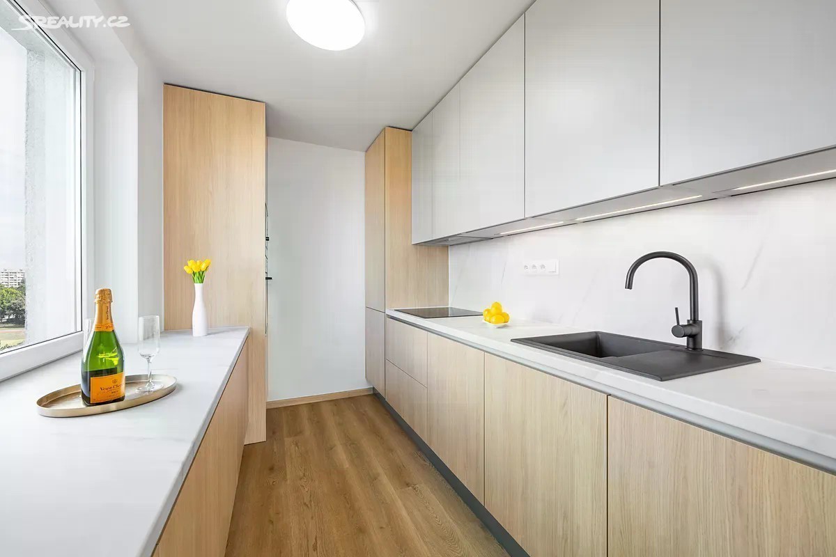 Nabízím kompletně zrekonstruovaný krásný byt 3+kk v revitalizovaném panelovém domě s výhledem do zeleně a přímo u stanice metra Hloubětín. Byt vypadá přesně jak vidíte na fotografiích, nejedná se o vizualizaci. Kuchyně je vyrobena na míru a kompletně vybavená spotřebiči (elektrická trouba, mikrovlnná trouba, indukční deska, myčka). Kuchyně je krásně prosvětlená oknem přímo nad linkou a spolu s obývacím pokojem tvoří útulný rodinný prostor. Koupelna je s vanou, se skleněnou sprchovou zástěnou, podlahovým topením a designovým umyvadlem na praktické skříňce se dvěma zásuvkami. Byt je dispozičně velmi dobře řešený s kuchyní a obývacím pokojem. Dále se dvěma prostornými ložnicemi, nádhernou koupelnou a samostatnou toaletou. Byt má lodžii a sklep. Byt je velmi tichý a přímo u stanice metra Hloubětín a OC Hloubětín. Parkování je bezproblémové kolem domu. Dispozice bytu 3+kk: - 2x plnohodnotná ložnice (14,22 m2 + 11,04 m2) - Obývací pokoj s prostornou kuchyní na míru (23 m2) - Vstupní chodba (8,02 m2) - Koupelna (3,1 m2) - WC (1 m2) - Lodžie (3,67 m2) - Sklep (1 m2) V kompletní rekonstrukci ve standardu novostavby je zahrnuto: - nová kuchyňská linka vyrobena na míru se spotřebiči (značková elektrická trouba, myčka, indukční deska, digestoř, osvětlení, dřez) - celková výměna elektroinstalačních rozvodů v mědi - nové osvětlení bytu Linescape Mezzo Premium 8, LED Light Strip Plus 2 - kompletní úprava povrchů stěn - nové zárubně a dveře - nivelace podlah a nová vinylová podlaha - špičková podlaha SPC Floor Concept Dub Rustic 5-star - velkoformátový obklad zn. White Marble Premium Selection - nová sanita (vana, sprcha, umyvadlo, skříňka, toaleta) - podlahové topení v koupelně s digitálním termostatem - sádrové omítky a SDK podhled v celém bytě - příprava na pračku v koupelně Co charakterizuje bytový dům: - Dům je velmi dobře spravován SVJ s velkým zaměřením na čisté, klidné a bezpečné bydlení. - Dům je po celkové revitalizaci. Je kompletně zateplený a samozřejmostí jsou vstupy na čipy, plastová okna, kamerový systém, zasklené nové lodžie. - Zrekonstruované jsou i společné prostory a dva výtahy. - Ve společných prostorách je kamerový systém. Velkou výhodou je kompletní občanská vybavenost, blízkosti OC Hloubětín, metro B Hloubětín, dále blízkost rozsáhlého Zámeckého parku, Vyhlídky Lehovec nebo Kyjského rybníku a další zeleně, obchodů, hřiště, a mnoha sportovišť (skatepark, parkurové a workoutové hřiště, atd.). Zároveň jste autem za pár minut na městském okruhu nebo v centru města. Budu se těšit na osobní schůzku při prohlídce. Pro sjednání termínu prohlídky, prosím, vyplňte formulář níže. Prosím o kontaktování jenom přímé zájemce, a ne realitní kanceláře. Děkuji za respektování.
