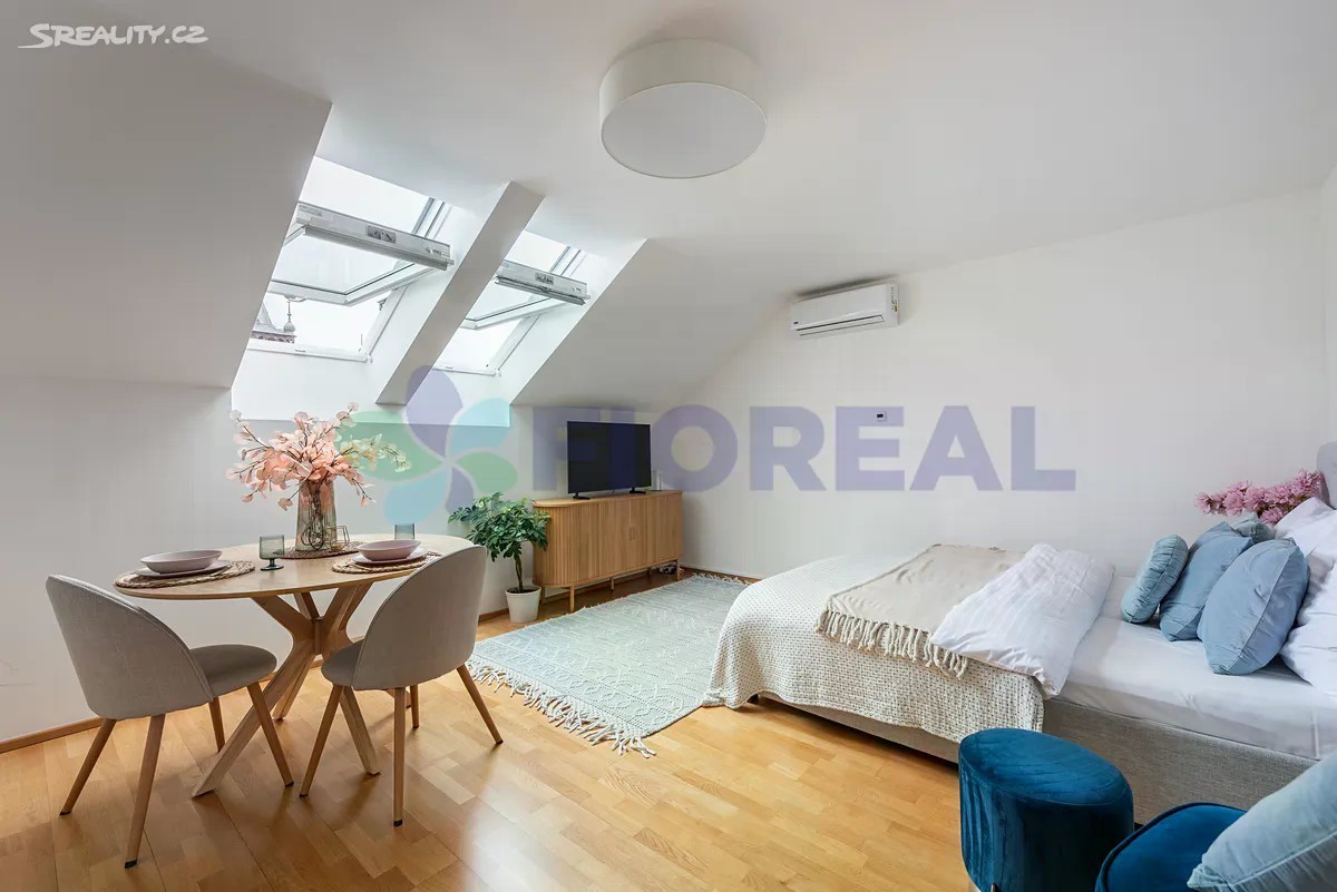 V exkluzivním zastoupení Vám zprostředkujeme prodej designového, zrekonstruovaného bytu o velikosti 1+kk, ploše 29,7m², v šestém nadzemním podlaží cihlové domu s výtahem. Byt je situován v původní historické zástavbě se zachovanými secesními prvky a nezaměnitelným charakterem místa, kdy je nyní využíván ke krátkodobým pronájmům skrze platformu Airbnb (zhodnocení a konkrétní roční výnosnost na vyžádání u makléře). Konkrétně jde o luxusní rezidenční projekt Ferdinand Palace situovaný v samém srdci Prahy 1 Nového Města, jenž patří mezi unikátní historické objekty, jejichž počátky sahají až do 14. století. Fasádu zdobí busty králů Karla IV. a Jiřího z Poděbrad. Mezi největší přednosti bytu patří minimalistický a vkusný design na míru, klimatizace, dostatek úložných prostor a reprezentativní vstup do domu včetně společných prostor. Jedná se o velmi dobrou lokalitu v samotném centru města s výbornou dostupností díky nedaleké 6 min. vzdálené tramvajové zastávky a stanici metra B Karlovo náměstí nebo ve vzdálenosti do 12 min. metro A, B Můstek či A, C Muzeum. K volnočasovým aktivitám je k dispozici nespočet možností kulturního vyžití, okolních parků, zahrad, restaurací a služeb. V místě se nachází veškerá občanská vybavenost, popřípadě pro větší nákupy lze využít i nedaleké obchodní centrum Quadrio. Celkové měsíční poplatky činí 4.700, Kč, tj. (z toho 1.000, Kč elektřina a 3.700,Kč ostatní služby spojené s užíváním bytu). Volný ihned. Možnost financovat pomocí hypotečního úvěru. Více informací u makléře.