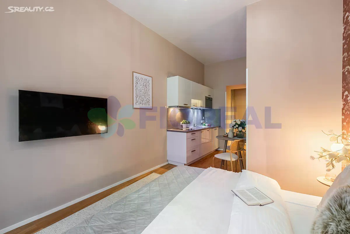 V exkluzivním zastoupení Vám zprostředkujeme prodej designového, zrekonstruovaného bytu o velikosti 1+kk, ploše 26,4m², v druhém nadzemním podlaží cihlové domu s výtahem. Byt je situován v původní historické zástavbě se zachovanými secesními prvky a nezaměnitelným charakterem místa, kdy je nyní využíván ke krátkodobým pronájmům skrze platformu Airbnb (zhodnocení a konkrétní roční výnosnost na vyžádání u makléře). Konkrétně jde o luxusní rezidenční projekt Ferdinand Palace situovaný v samém srdci Prahy 1 Nového Města, jenž patří mezi unikátní historické objekty, jejichž počátky sahají až do 14. století. Fasádu zdobí busty králů Karla IV. a Jiřího z Poděbrad. Mezi největší přednosti bytu patří minimalistický a vkusný design na míru, dostatek úložných prostor a reprezentativní vstup do domu včetně společných prostor. Jedná se o velmi dobrou lokalitu v samotném centru města s výbornou dostupností díky nedaleké 6 min. vzdálené tramvajové zastávky a stanici metra B Karlovo náměstí nebo ve vzdálenosti do 12 min. metro A, B Můstek či A, C Muzeum. K volnočasovým aktivitám je k dispozici nespočet možností kulturního vyžití, okolních parků, zahrad, restaurací a služeb. V místě se nachází veškerá občanská vybavenost, popřípadě pro větší nákupy lze využít i nedaleké obchodní centrum Quadrio. Celkové měsíční poplatky činí 4.500, Kč, tj. (z toho 1.000, Kč elektřina a 3.500,Kč ostatní služby spojené s užíváním bytu). Volný ihned. Možnost financovat pomocí hypotečního úvěru. Více informací u makléře.