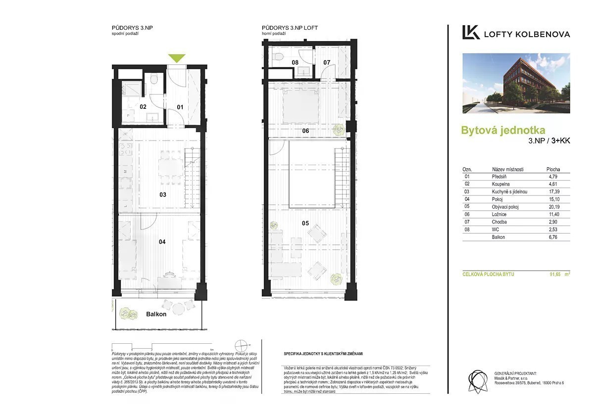 Velmi tichý byt 3+kk s balkonem, dvěma koupelnami, klimatizací, garážovým stáním a sklepem. Jen 2 minuty na metro, 16 minut do centra. Toužíte po domově v exkluzivní rychle se rozvíjející lokalitě s kvalitním nadčasovým bydlením? Důmyslně navržený byt o dispozici 3+kk s balkonem, dvěma koupelnami a parkováním přímo v bytovém domě, navíc v docházkové vzdálenosti od metra, je tou správnou volbou. Byty či ateliéry o dispozici 3+kk začínají v našem bytovém domě už na ceně 9.900.400 Kč. Objevte nejvyhledávanější čtvrť v prestižní centrální části Vysočan Prahy 9. V rezidenci zbývá jen několik bytů. Obyvatelé domu mohou využívat řadu služeb v blízkém okolí, včetně galerií, moderních posiloven, parků, hřišť pro děti, kaváren. Jedná se o dopravně skvěle dostupnou oblast: metro Kolbenova 2 minuty chůze, tramvajová zastávka Poštovská 1 minutu. Dispozice bytu a příslušenství: ● Dolní podlaží: předsíň, koupelna se sprchovým koutem, kuchyně s jídelnou, pokoj se vstupem na balkon ● Horní podlaží: galerie, obývací pokoj, ložnice, chodba, koupelna s toaletou ● 1PP: garážové stání přímo v domě ● 1PP: sklep necelých 3 m2 Vybavení a zařízení: ● kvalitní podlahy v dekoru běleného dubu ● keramická dlažba a obklady v koupelnách ● protihluková velkoformátová okna nápaditě odkazující na industriální historii lokality ● elektricky ovladatelné předokenní žaluzie na všech oknech projektu jen podtrhující esteticky dokonalý dojem ● komfortní podlahové topení a vzduchotechnika ● klimatizace Architektura domu citlivě odkazuje na industriální historii místa a vytváří dojem uměleckého díla. Terasa či balkon v každém podlaží výrazně rozšiřují obytnou část bytu a nabízejí tak nejen příjemné venkovní posezení, ale i funkční prostor pro mnohé využití. Parkování: K bytu náleží parkovací místo ve formě zakladače za cenu 495 000 Kč vč. DPH a sklep o velikosti 2,9 m2 za 146.000 Kč vč. DPH (není zahrnuto v ceně bytu). Cena bytu: 13.200.000 Kč. Plocha k bytu: celková plocha bytu 91,46 m2, ostatní plochy viz půdorys v inzerci. Některé fotografie či vizualizace v inzerci mohou mít ilustrační charakter. Pro více informací, detailní půdorysy či osobní prohlídku bytu nás, prosím, neváhejte kontaktovat. Zn. 9835. Prohlídky jsou možné i ve dny státních svátků. Vřele doporučujeme osobní návštěvu této jedinečné nemovitosti.
