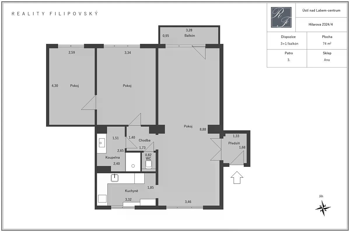 Prodej bytu 3+1 74 m² Hilarova, Ústí nad Labem - Ústí nad Labem-centrum