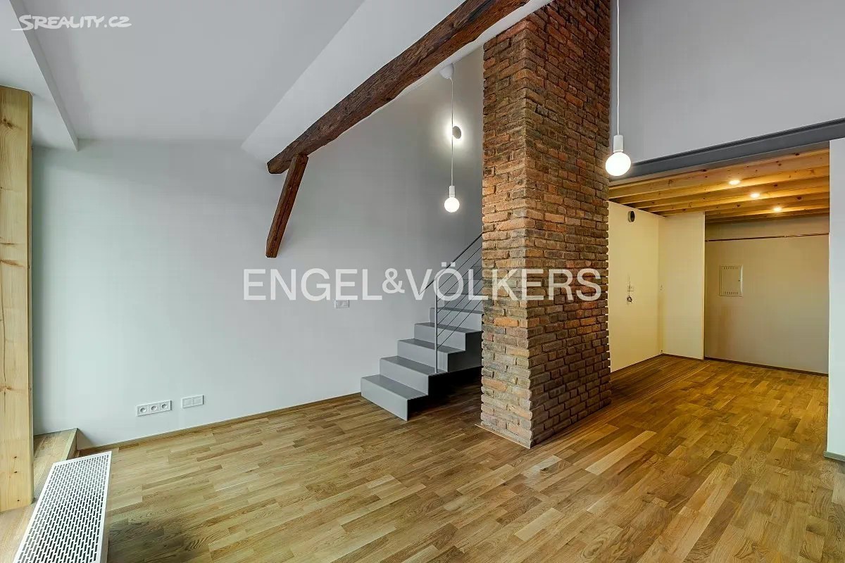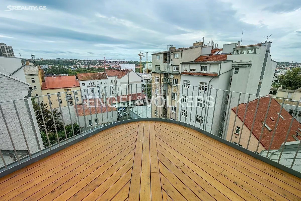 K pronájmu od 1.12.2025 je připravený zbrusu nový mezonetový byt 3+kk, který se nachází v šestém podlaží nově postavené nástavby. Dispozice bytu se skládá ze vstupní chodby s přístupem do hlavní obytné místnosti, která kombinuje obývací prostor s plně vybaveným kuchyňským koutem a přímým vstupem na první terasu. Na tomto podlaží je také samostatná ložnice. Po vystoupání po schodišti najdete druhou ložnici s vlastním vstupem na druhou terasu. Koupelna disponuje vanou a oddělenou toaletou. Byt vyniká vysokými stropy, rekuperací vzduchu a zachovalými dřevěnými trámy, které dodávají prostoru jedinečnou atmosféru. Parkování je možné na ulici. Byt se nachází v lokalitě s kompletní občanskou vybaveností a skvělou dopravní dostupností. Tramvajová zastávka je vzdálena pouhé 2 minuty chůze.