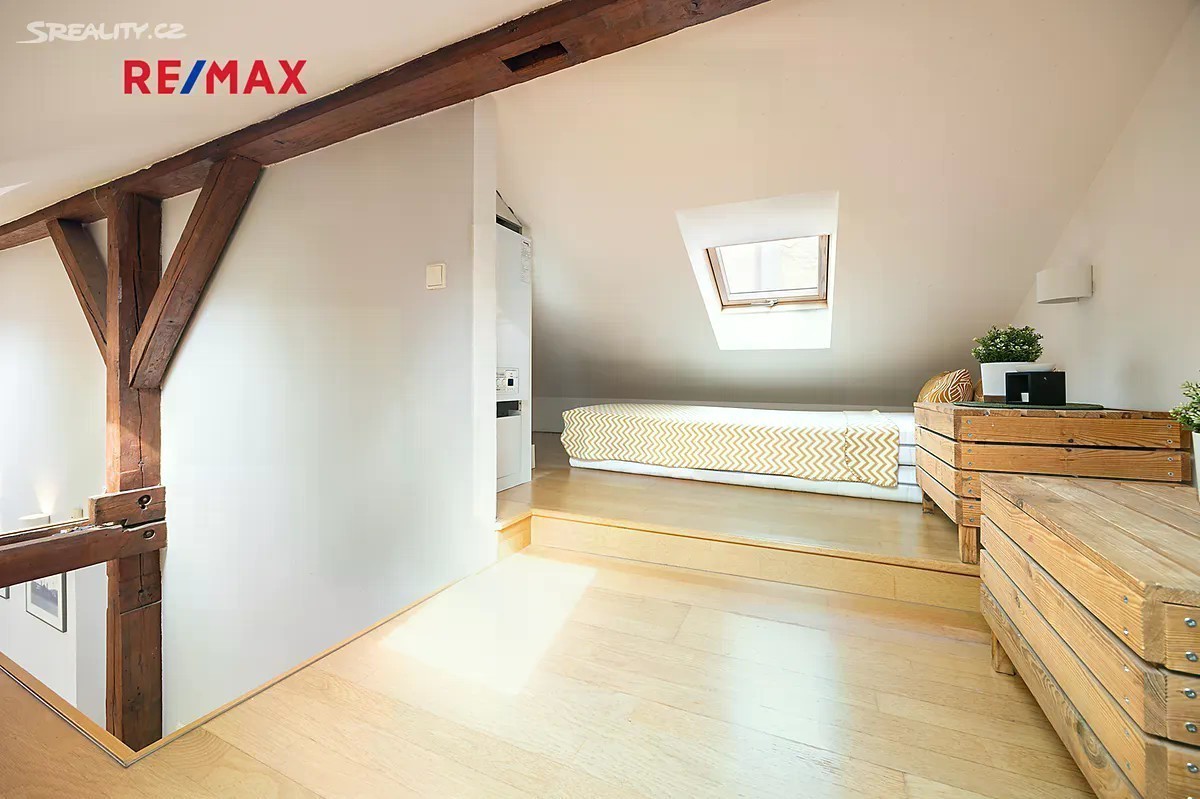 Nabízíme prodej jedinečného půdního prosvětleného bytu 2+kk o velikosti 66m² (celková podlahová plocha 75m²), v samém centru Prahy, u Staroměstského náměstí. Byt je určen pro ty, kteří chtějí být v centru dění, zažívat atmosféru historického centra Prahy a zároveň mít klid a ticho, když se vrátí domů. Byt je umístěn ve 4. patře ve vnitrobloku s výtahem a díky tomu je dokonale chráněn od venkovního ruchu. Byt má prostorný obývací pokoj s kuchyňským koutem o rozloze 36m² (45m² celkově), ložnici 13,3m² s vestavnou skříní, koupelnu a předsíň s další vestavnou skříní. Kuchyň je plně zařízena vestavnými spotřebiči Miele. V bytě je nové led osvětlení a plynový kotel za nový kondenzační byl vyměněn před 5 lety. Do celkové podlahové plochy nezapočítáváme prostor nad kuchyní, který se dá využít na přespání nebo jako odkládací prostor. V domě jsou nově udělané elektrické rozvody, výtahy a chodby jsou nově vymalovány. Hned před domem máte dominantu kostela Sv. Havla, Havelský trh, pár metrů Stavovské divadlo, Myslbek nebo známou kavárnu Cafe Cafe a takto bychom mohli pokračovat dál Staroměstským či Václavským náměstím… Metro Můstek je jen 2 minuty chůze. Neváhejte mě kontaktovat, ráda Vás touto úžasnou nemovitostí provedu.