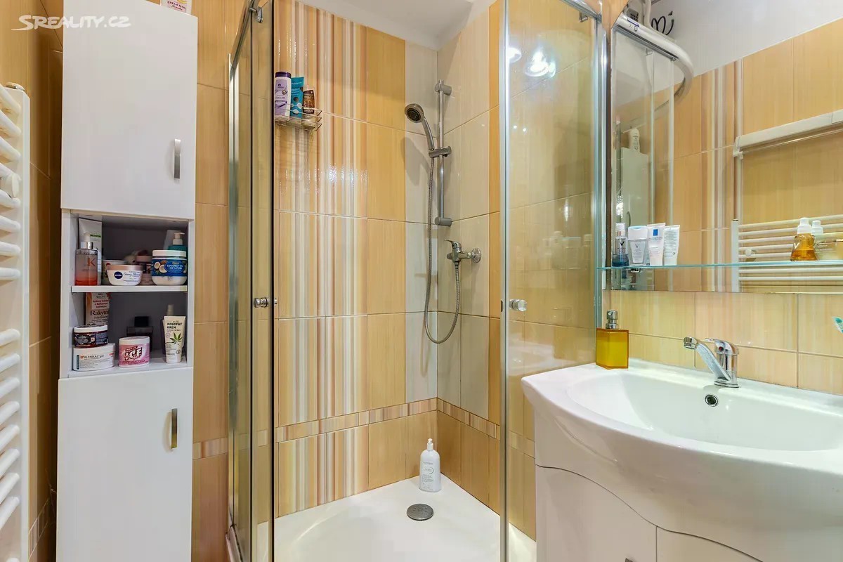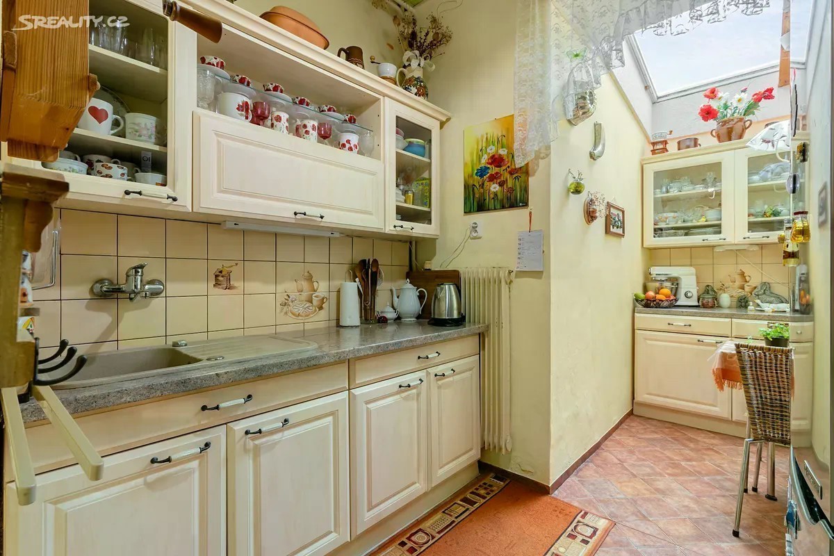 Dovoluji si Vám výhradně nabídnout prostorné bydlení v úplném centru města Rudná. Tento byt v rodinném domě je svým umístěním ideální pro někoho, kdo chce bydlet jen pár kroků od autobusu, obchodů a restaurací. Předmětem prodeje je prodej 1/2 RD se dvěma stavebně oddělenými byty. Současní majitelé využívají přízemí byt, a to včetně dostatečných skladových prostor, poloviny garáže a sklepa pod garáží. Přízemní byt o dispozici 3+1 se skládá z těchto částí: obývací pokoj 22.0 m2 dětský pokoj 16.7 m2 ložnice 14.0 m2 kuchyně 8.3 m2 koupelna 2.5 m2 WC 1.4 m2 spíž 1.6 m2 prádelna 5.9 m2 sklad 15.4 m2 Společnými prostory jsou chodby, schodiště, prostory na půdě a společném pozemku. Garáž a sklep pod ní jsou využívány dle předem dohodnutých pravidel se spoluvlastníky. Každý byt má vlastní měření elektřiny, plynu i vody. Za první republiky byla v tomto domě vyhlášená cukrárna a sloužil pro její zázemí a byt cukráře. V následujících letech byl postupně přestavován do současné podoby. Byly přivedeny všechny inženýrské sítě, které jsou v Rudné k dispozici. Vytápění pro tento byt je zajištěno plynovým kotlem a ohřev vody el. bojlerem. Jako alternativu vytápění je možné využít krbová kamna v prostoru pokoje. V posledních letech prošel dům částečnou výměnou oken za plastová. Průkaz energetické náročnosti zatím nebyl dodán, proto uvádím písmeno G. V případě dotazů mne neváhejte kontaktovat. Těším se na shledanou při prohlídce.
