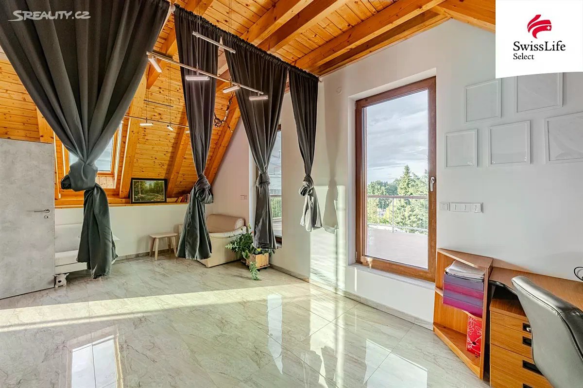 Luxusní rodinné sídlo s dechberoucím výhledem - Praha-Zbraslav Hledáte domov, který kombinuje moderní technologie, nadčasový design, velkorysý prostor a jedinečnou polohu v přírodě? Na okraji Prahy-Zbraslavi na vás čeká nemovitost, která vás pohltí hned při první návštěvě. Stačí projít zahradou, pohlédnout z terasy do údolí Berounky - a víte, že už nechcete bydlet jinde. Hlavní benefity: -dům po kompletní rekonstrukci a nástavbě (2018-2022) - bez nutnosti dalších investic - dvě prostorné terasy a balkony orientované na východ i západ - východy i západy slunce jako na dlani - panoramatické okno v horním obývacím pokoji s fascinujícím výhledem do zeleného údolí - chytrá domácnost: Jablotron alarm s napojením na pult, kamerový systém, ovládání brány, garáže, kotle i spotřebičů na dálku přes internet - peletový kotel ATMOS s wi-fi, podlahové vytápění a radiátory - chytré řešení, které kombinuje maximální komfort s nízkými náklady (energetická třída B) - vzrostlá zahrada o ploše 1 994 m² se zavlažováním a rozvody elektřiny - připraveno pro případný bazén, zahradní kuchyni či hřiště - absolutní soukromí: dům je skrytý za stromy, z cesty jej prakticky neuvidíte - možnost vytvořit dvě samostatné bytové jednotky - každá se svým vstupem - celý dům je podsklepený, s garáží a dílnou Dispozice: -Suterén: garáž, dílna, technická místnost s kotelnou, 2 sklady, šatna. -Přízemí: vstupní hala, prostorný obývací pokoj s jídelnou, kuchyň, ložnice s vlastní koupelnou a vanou, hostovský pokoj, koupelna se sprchovým koutem a samostatně WC. -Patro: velký prostor s panoramatickým výhledem, ložnice, dvoj pokoj / pracovna s přístupem na velkou terasu, koupelna, přístup na půdní prostory (hrací místo pro děti) Exkluzivní poloha: - výhled do údolí chráněný elektrickým vedením - výstavba nových domů v lokalitě není povolena - bezpečné spojení do centra - nový podchod pod Strakonickou (z r. 2024) vás za 7 minut dovede k autobusu, který je na Smíchovském nádraží za 17 minut - příroda na dosah - cyklostezky k Berounce a Vltavě, Brdy, Cukrák - každodenní kontakt s přírodou - houby, lesní plody i volně žijící zvěř pár kroků od domu - sportovní a volnočasové aktivity: tenis, golf, jezero v Lipencích, jezdecký areál - kompletní infrastruktura: školy, školky, polikliniky, obchody, MHD v dojezdové vzdálenosti Proč právě tento dům? Tento dům nebyl původně „určen k prodeji“. Paní majitelka každý detail promyslela a vybudovala s láskou - od masivního schodiště z jasanu na míru přes elegantní koupelny až po nádherný krov s pohledovými trámy a útulné schovky pro děti. Je to místo, které nabízí luxus, bezpečí a klid uprostřed přírody, a přitom na dosah centra města. Nemovitost, která má svou duši a poskytne nové rodině prostor pro život i odpočinek. Tohle není jenom dům - je to životní styl. Prohlídky budou možné od 15.10.2025 dál. Budu se na vás těšit!