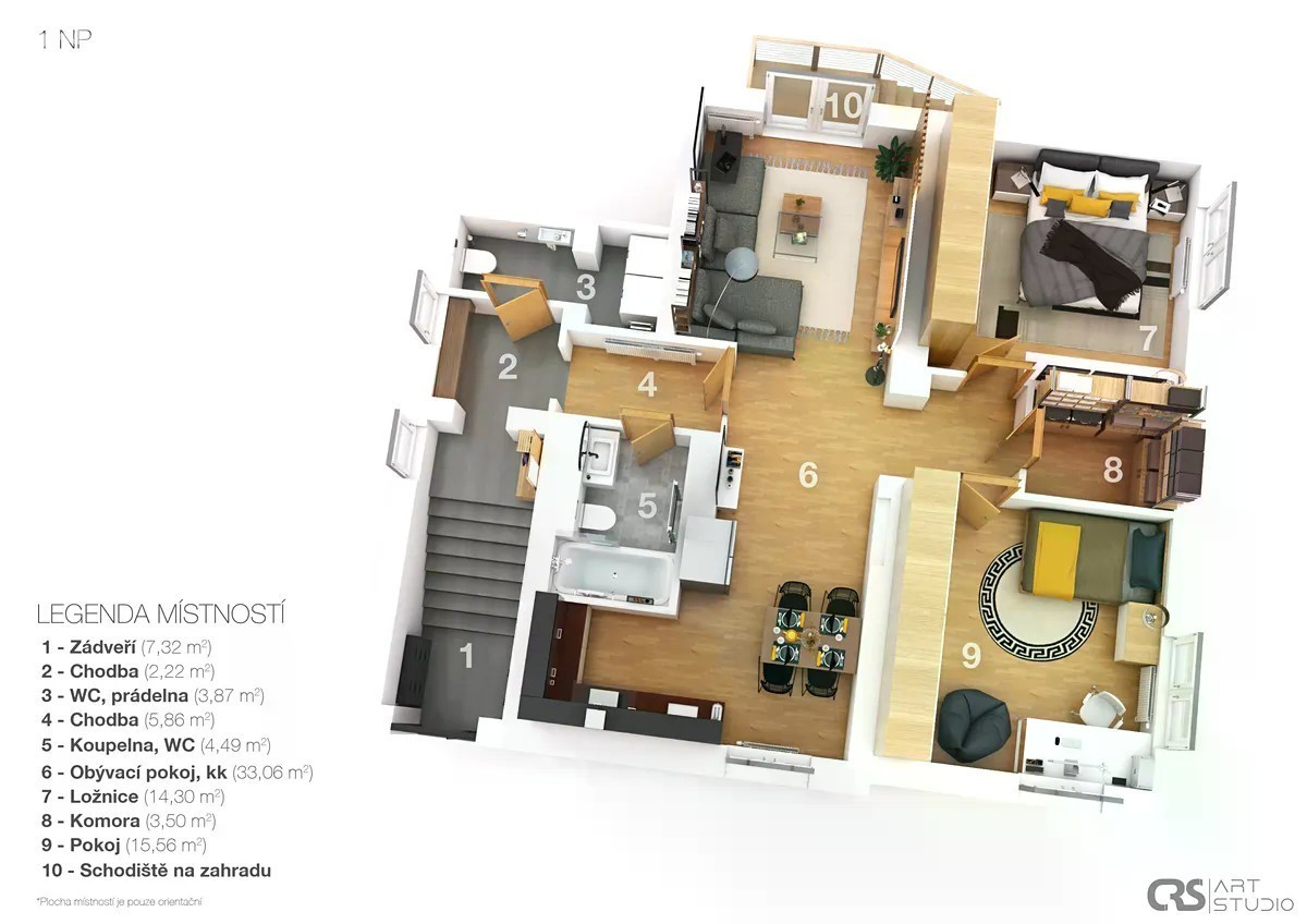 Ráno káva na terase, odpoledne klid na zahradě, večer grilovačka s přáteli. To všechno v bytě 3+kk (88 m²) s vlastním vstupem a soukromou zahradou o rozloze 203 m². Dispozice je promyšlená: velký obývák s kuchyní (33 m²), dvě ložnice, šatna, koupelna i samostatné WC. K tomu parkování na vlastním pozemku. Kompletní rekonstrukce, moderní technologie, klidná ulice a přitom do centra za 20 minut. Společenství vlastníků + správcovská firma. Tohle není kompromis, to je domov.