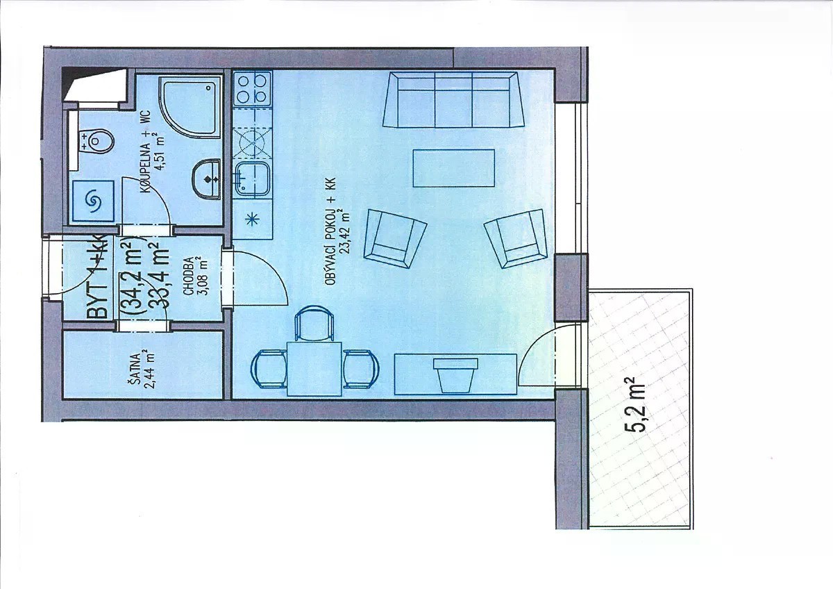 K pronájmu nabízíme novostavbu bytu 1+kk s balkonem v Brně - Bystrci. Byt se nachází v 1.NP domu s výtahem a jeho podlahová plocha je 34,2 m2 + balkon 5,2 m2. Vstup je do předsíně, ze které je přístupný obytný prostor s kuchyňským koutem se vstupem na balkon a koupelna se sprchovým koutem, umyvadlem, WC a místem na pračku a šatna. Orientace bytu je jihozápadní. V domě je zaveden internet. Byt bude pronajímán jako nezařízený, součástí pronájmu je jen kuchyňská linka s varnou deskou, troubou a lednicí. Nájemní smlouva bude uzavřena na dobu jednoho roku s možností prodloužení. Byt je volný od 1.12.2025. Mimo vlastní nájemné bude nájemce hradit spotřebované energie ve výši 3.000,- Kč měsíčně, které budou 1x ročně vyúčtovány. Majitel požaduje kauci ve výši jednoho nájmu vč. energií.