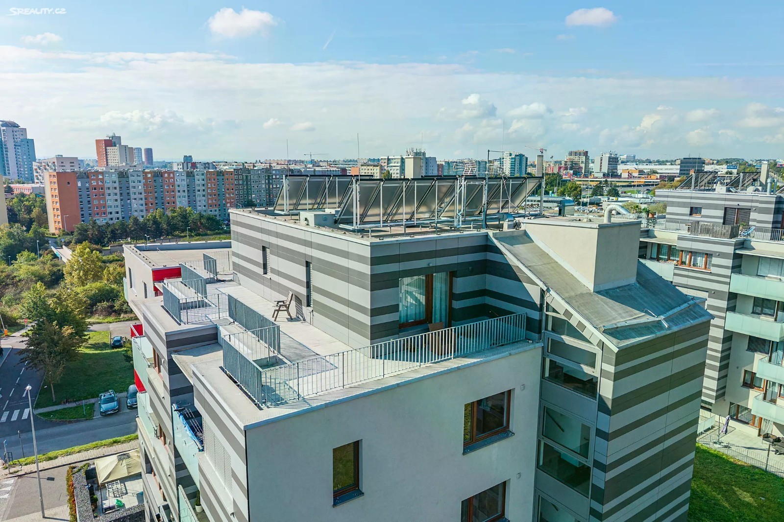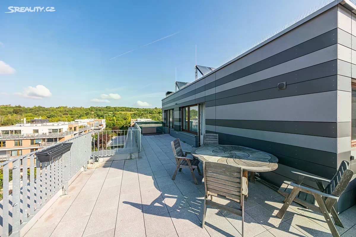 RK nevolat! - za žádných okolností ! Nabízíme k prodeji exkluzivní penthouse 4+kk o velikosti 102 m² s terasami o celkové ploše 137 m² (Celkem 239 m²), nacházející se v posledním podlaží rezidenčního projektu Botanica v Praze 5 - Jinonicích. Byt je jediný na patře a poskytuje tak naprosté soukromí. Dispozici tvoří prostorný obývací pokoj s moderní kuchyní a přímým vstupem na terasu, tři ložnice, dvě koupelny, samostatné WC, komora a vstupní hala. Interiér je vybaven dřevěnými podlahami, klimatizací a kuchyňskou linkou na míru se spotřebiči. To největší kouzlo ale přinášejí dvě velkorysé terasy, které obepínají byt a nabízejí dechberoucí výhledy na Prahu i okolní zeleň. Pro ranní kávu, večerní posezení s přáteli i rodinnou pohodu - terasy se stanou vaším soukromým rájem v srdci města. K bytu náleží dvě garážová stání v podzemní garáži a sklep. Rezidenční areál Botanica je vyhledávanou adresou díky moderní architektuře, zeleni, dětským hřištím a bezpečnému prostředí. Stanice metra B Jinonice je v pěší vzdálenosti, v okolí je kompletní občanská vybavenost i přírodní park Prokopské údolí. Luxusní bydlení s jedinečnou atmosférou, kde se snoubí soukromí, komfort a výborná dostupnost do centra Prahy. RK nevolat!