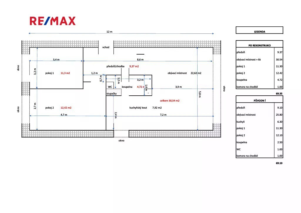 Ve výhradním zastoupení nabízíme jedinečnou možnost koupě bytu o dispozici 3+kk v osobním vlastnictví, který se nachází v zatepleném panelovém domě v klidné, okrajové části hlavního města Prahy. Byt o celkové výměře 69 m² se nachází v 1 NP ze 7NP bytového domu a nabízí hodně světla. Budova byla kolaudována v roce 1964, od roku 2008 probíhají postupné rekonstrukce - kompletní zateplení a plastová okna, nové vstupní dveře (2008), nové stoupačky (2014), vstup na čip a nová střecha (2024), je zde výtah. Výsledovka hospodaření SVJ je případně k dispozici. Celkové náklady činí měsíčně cca 7 700 Kč, z toho zálohy na plyn 4 000 Kč - bývá přeplatek. Okna bytu jsou orientována na severovýchod i jihozápad, u snídaně vás tedy slunce vítá a před spaním vás čeká jeho krásný západ. Všechna okna mají dvojskla s certifikovanou bezpečnostní fólií. A když chcete mít absolutní soukromí, jsou zde praktické rolety, venkovní rolety na elektrické ovládání lze instalovat bez problémů. Ostatně - vzhledem k umístění domu zde není přílišná frekvence chodců. Silnice je ukryta za stromy. Podlahové krytiny jsou kombinací keramiky, speciálně upravených lakovaných OSB desek a koberců. Dispozice bytu je po celkové rekonstrukci v roce 2014 řešena jednoduše a prakticky - vstupními dveřmi se dostaneme do předsíně (9,37 m²), ze které vlevo vstoupíme do obývací části (22,62 m²), kde byla při rekonstrukci odstraněna příčka a kuchyň (7,92 m²) tak na prostor přímo navazuje. Díky velkým oknům je zde mnoho světla. Vrátíme - li se zpět do prostorné předsíně, nalevo se nachází koupelna (4,72 m²) se sprchovým koutem a WC (opticky oddělené zídkou), je zde též přípojka na pračku. V pravé části bytu jsou dva pokoje, využívané jako ložnice (11,30 m²) a dětský pokoj (12,42 m²). K jednotce přísluší komora 1 m² na stejném podlaží. Vytápění i ohřev vody jsou řešeny centrálně. V lokalitě je výborná občanská vybavenost - obchody Penny, Tesco, lékař - necelých 500 m je poliklinika, MŠ, ZŠ, dostatek zeleně (jedno z dětských hřišť je hned za domem), možnosti sportovního vyžití. V blízkém okolí je mnoho občerstvení a restaurací, jen si vybrat. Parkován bez problémů před domem. Vzhledem k lokalitě je zde i výborná dopravní dostupnost - zastávka autobusu se nachází cca 60 m, na stanici metra Skalka je to necelé 3 km - 10 minut, do centra města se dostanete do 15 - 20 minut, v blízkosti se nacházejí nájezdy na Jižní spojku. Máte-li zájem o další informace nebo o prohlídku, prosím, kontaktujte mne. V případě více zájemců bude přihlédnuto k nejlepší nabídce