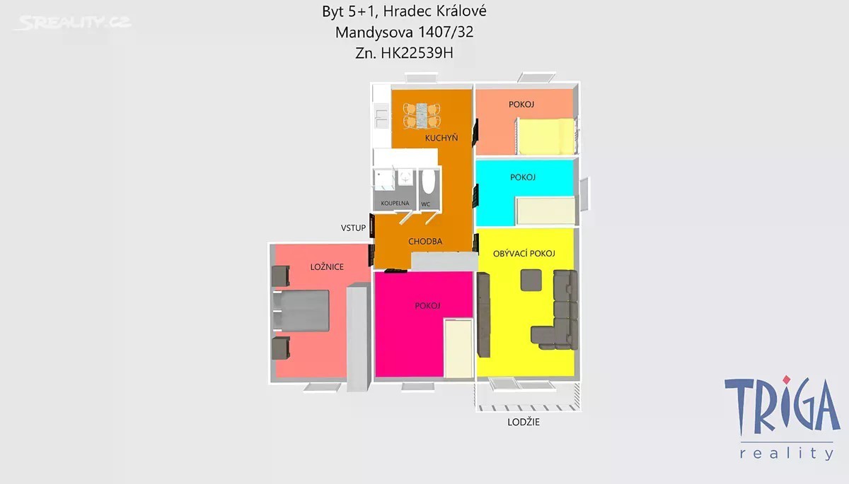 Hledáte místo, kde bude mít každý člen rodiny svůj prostor a kde se budete cítit opravdu doma? Tento byt s dispozicí 5+1 v osobním vlastnictví nabízí 93,9 m² (včetně lodžie a sklepa), je ideální volbou pro ty, kdo chtějí spojit pohodlí, praktičnost a výbornou dostupnost. Nachází se v 7. patře panelového domu s novým výtahem. Užitná plocha je 88 m². Centrální chodba s vestavnou skříní je příjemně velká, takže byt působí vzdušně a prakticky. Obývací pokoj s lodžií - ideální místo na ranní kávu nebo večerní relax. Kuchyně ve tvaru L s vestavěnými spotřebiči, s prostorem k umístění jídelního stolu. Koupelna se sprchovým koutem a samostatné WC, zde proběhla rekonstrukce v roce 2024. Jádro je zděné, jsou zde plastová okna. Byt je ihned k nastěhování bez nutnosti dalších investic a je možno ponechat stávající vybavení. Dům prochází modernizací. Letos proběhne kompletní revitalizace - zateplení, nová fasáda a rekonstrukce střechy. Díky tomu se bydlení stane nejen komfortnější, ale i úspornější. Lokalita, která vás nadchne. Mateřská i základní škola v docházkové vzdálenosti, obchody Lidl, Albert a OC Futurum pár minut chůze. Zastávka MHD jen 200 m, centrum města dostupné za 10 minut. V blízkosti je také lékař, lékárna, pošta a spousta zeleně i dětských hřišť. K bytu náleží sklepní kóje a k dispozici je i kolárna. Parkování zdarma přímo před domem. Tento byt je připraven stát se vaším novým domovem. Přijďte se přesvědčit osobně - místo, atmosféra i prostor vás nadchnou. Zak.č. HK22539H, PENB:G
