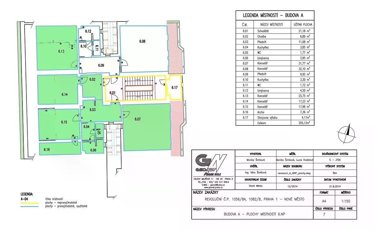 *Neplatíte provizi* Dovolujeme si vám nabídnou kancelářské prostory o velikosti 136 m2, které jsou umístěny v centru města, na Praze 1. Jednotka se nachází v podkroví na 6.NP a dispozičně je rozdělena na 4 větší kanceláře, sklad, kuchyňku a vlastní sociální zázemí. Revoluční 8 je administrativní budova, která si zachovala historickou podobu venkovní fasády. Vnitřní prostory prošly rozsáhlou rekonstrukcí a jako kontrast k fasádě je plně modernizovaný. Veškeré prostory jsou klimatizovány a bezpečností služba funguje 24/7. Kancelářský komplex budov A a B v Revoluční 8 se nachází ve známe pražské ulici Revoluční, která ústí na frekventovaném náměstí Republiky se stejnojmennou stanicí metra trasy B. Hned pod budovou je tramvajová stanice Dlouhá třída. Celkově lokace disponuje skvělou dopravní dostupností jak pomocí městské hromadné dopravy, tak automobilem. Parking 4500 Kč/místo/měsíc + DPH. Objekt nabízí i další jednotky. V této lokalitě Vám můžeme nabídnout i další komerční prostory - nechte si bezplatně zpracovat nabídku aktuálně dostupných prostor dle Vašeho zadání nebo navštivte naše webové stránky.