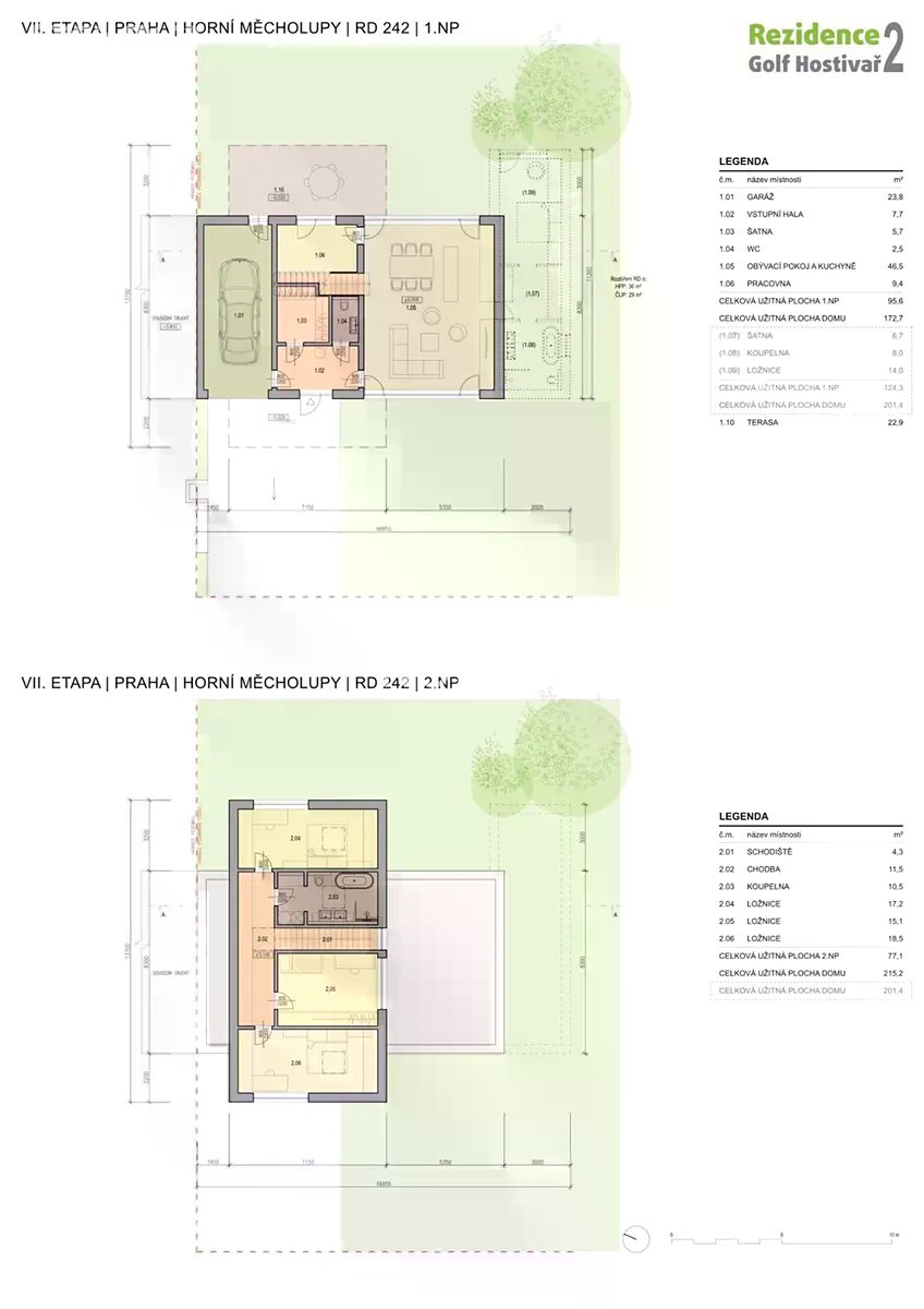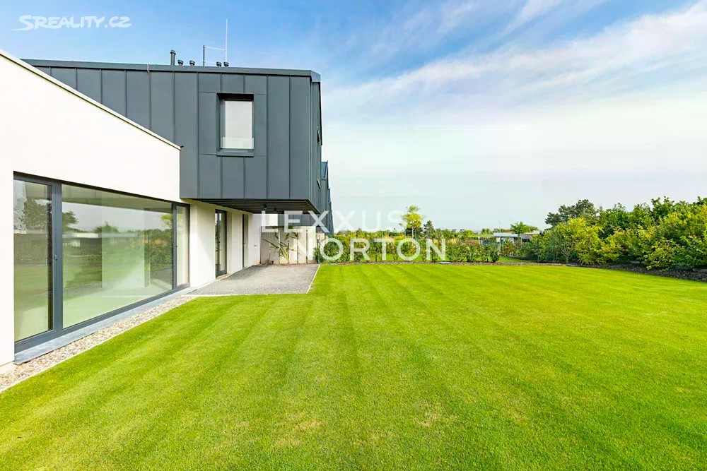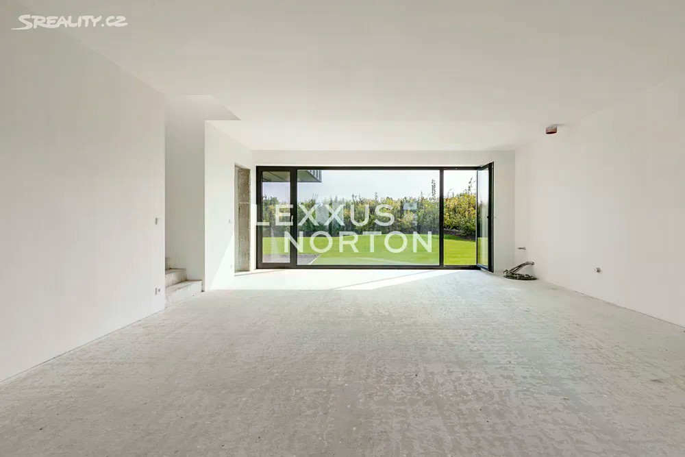 Nabízíme moderní rodinný dům inspirovaný českým funkcionalismem, situovaný v uzavřeném rezidenčním areálu přímo u golfového hřiště v Hostivaři. Dům je dokončený, včetně založené zahrady a povrchové materiály v interiéru si můžete stále vybrat. Celková užitná plocha domu činí 171 m², rozložená do dvou nadzemních podlažích. U vstupu do domu je hala s praktickou šatnou a toaletou, následuje obývací pokoj s jídelnou kuchyní o celkové velikosti 46,5 m². Obývací část má velká, hliníková okna na dvou stranách s propojením na terasu a následně zahradu se západní orientací. U obývacího pokoje je další místnost. V prvním patře se nacházení tři větší ložnice a prostorná koupelna (sprcha i vana) a také zázemí pro domácí práce. Dům má garáž pro jeden vůz se vchodem také na zahradu. Nemovitost je možno rozšířit o dalších cca 36 m² hrubé podlahové plochy v přízemí. Dům má vytápění samostatným plynovým kotlem, hliníková okna s trojsklem, podlahové vytápění a je energetické třídě B. V rámci vlastnictví nemovitosti je také podíl na okolních komunikacích, kde je zajištěný pravidelný servis a údržba v rámci golfového areálu a minimálními náklady. Rezidence Golf Hostivař je unikátní projekt v Praze 10 - Horních Měcholupech. Celý areál je koncipován jako soukromá čtvrť s kontrolovaným vjezdem, což zajišťuje maximální bezpečí a soukromí obyvatel. Součástí komplexu je 18-ti jamkové golfové hřiště, veřejná klubovna s restaurací a dětské hřiště. Velmi blízko najdete kompletní infrastrukturu a také zastávky MHD.