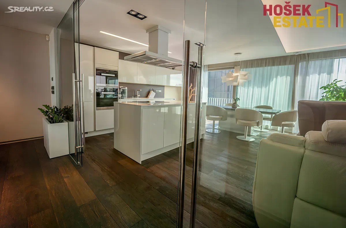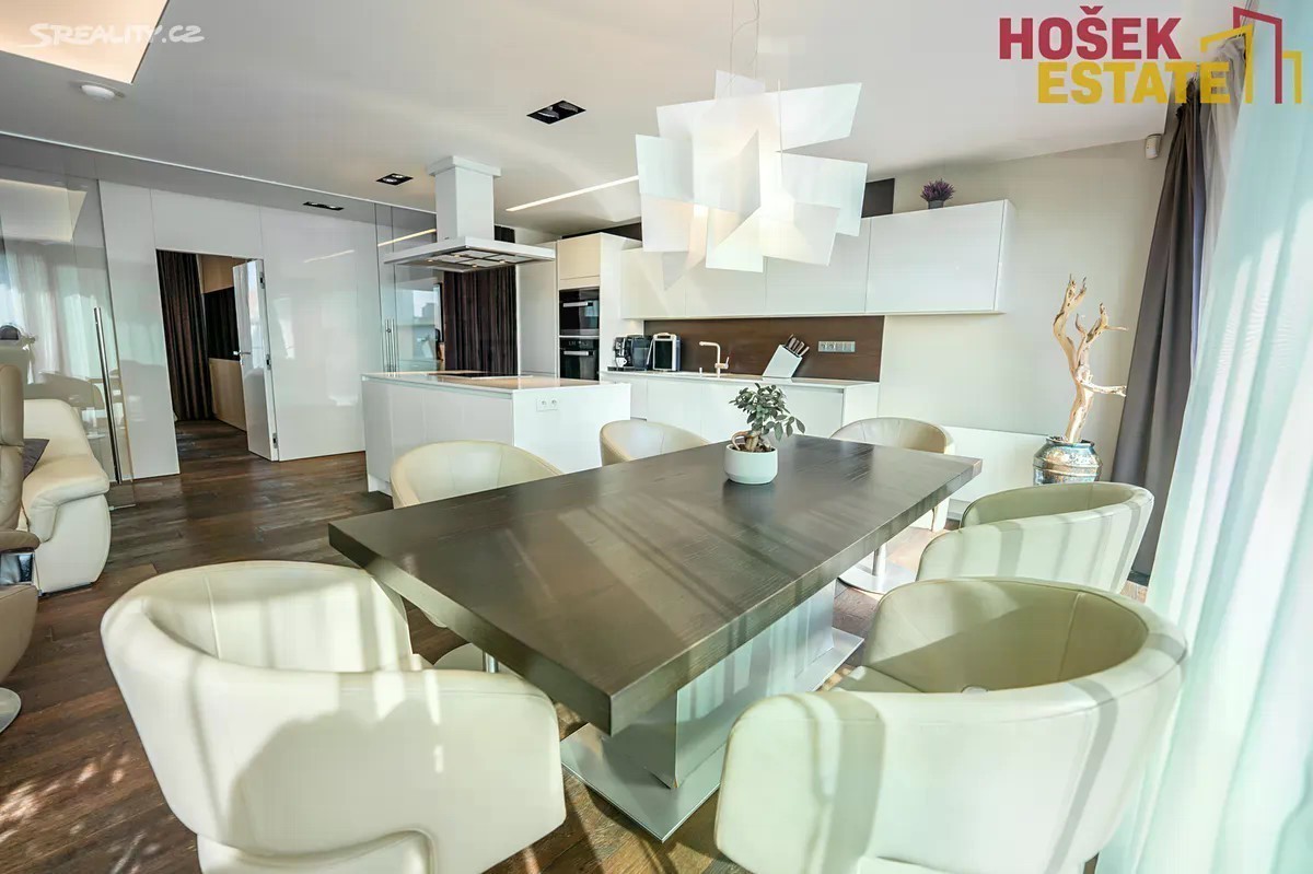 Hošek Estate Vám exkluzivně nabízí k prodeji nadstandardní byt s luxusními prvky o dispozici 4 + kk s terasou, nacházející se ve středu Brna na ulici Spálená, hned vedle nejmodernějšího komplexu v Brně Vlněná. Tento byt v osobním vlastnictví se nachází v moderním bytovém domě, kde byl kladen důraz na funkčnost a pohodlí. Byt se nachází v 6. podlaží sedmipodlažního objektu a jeho užitná plocha činí 109 m², celková plocha včetně terasy pak dosahuje 129 m². Tato prostorná dispozice je ideální pro rodinu, které poskytne dostatek místa pro život i odpočinek. Vybavení nemovitosti je na vysoké úrovni a zahrnuje ty nejmodernější prvky, které naplňují potřeby a trendy současného bydlení. Díky velkým hliníkovo-dřevěným oknům s trojskly je byt prosvětlený a vzdušný, což vytváří příjemnou atmosféru. Byt se pyšní velkými úložnými prostory a taktéž luxusní vybaveností spotřebičů zn. Miele, kuchyní Symersky, domácím kinem Pioneer, postelemi Hästens, krásnou dubovou podlahou, která sama o sobě je unikát a bezpečnostními vstupními dveřmi. Dále byt nabízí venkovní žaluzie, ambientní osvětlení v obývacím pokoji včetně světelného stropu a klimatizace v každém pokoji. Byt se nabízí kompletně vybavený. Lokalita Trnitá se vyznačuje výbornou dostupností služeb, škol a veřejné dopravy, což činí toto místo atraktivní pro všechny, kteří hledají pohodlné bydlení v blízkosti centra Brna. V oblasti se nachází množství obchodů, restaurací a parků, ideálních pro volnočasové aktivity. Tato nemovitost je ideální volbou pro ty, kteří hledají moderní a prostorný byt v atraktivní lokalitě. Vysoká kvalita života a pohodlí, které tento byt nabízí, umožňuje jeho budoucím obyvatelům plně si vychutnat výhody městského bydlení. K bytu je možnost dokoupit si 2 garážové stání vč. sklepů o velikosti 8m². V případě zájmu o prohlídku nás neváhejte kontaktovat.